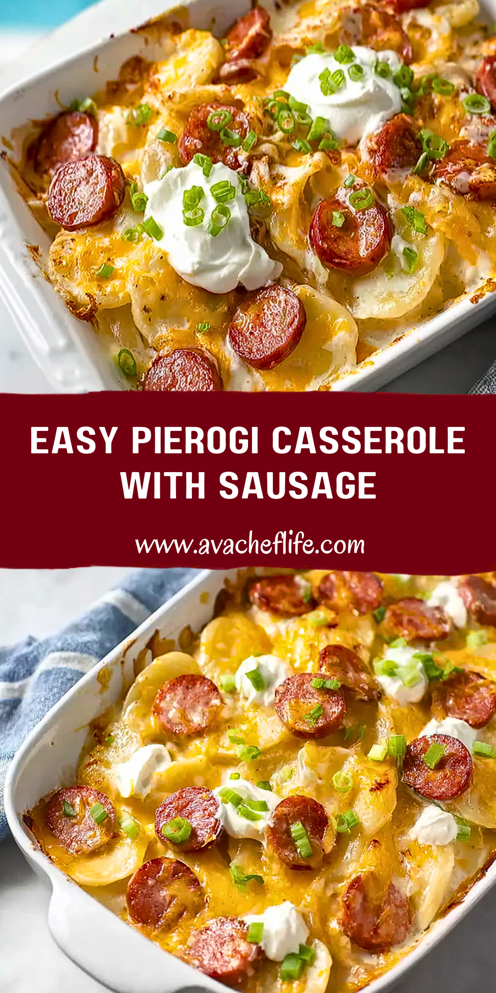 Keywords: pierogi casserole, sausage casserole, easy dinner, comfort food