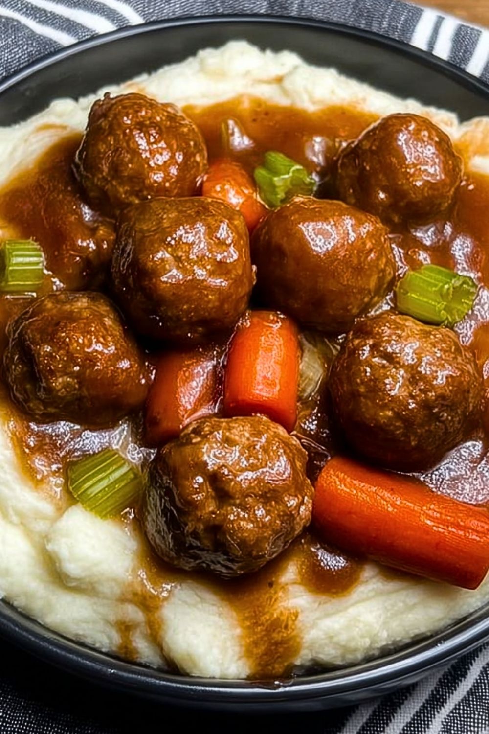What I love most about this dish is how it brings together familiar ingredients in an unexpected way. The frozen meatballs soak up all the flavors of the gravy, veggies, and seasonings, creating a dish that tastes like it’s been slow-simmered for hours. It’s the kind of recipe that earns you compliments at the table and gives you leftovers worth fighting over.