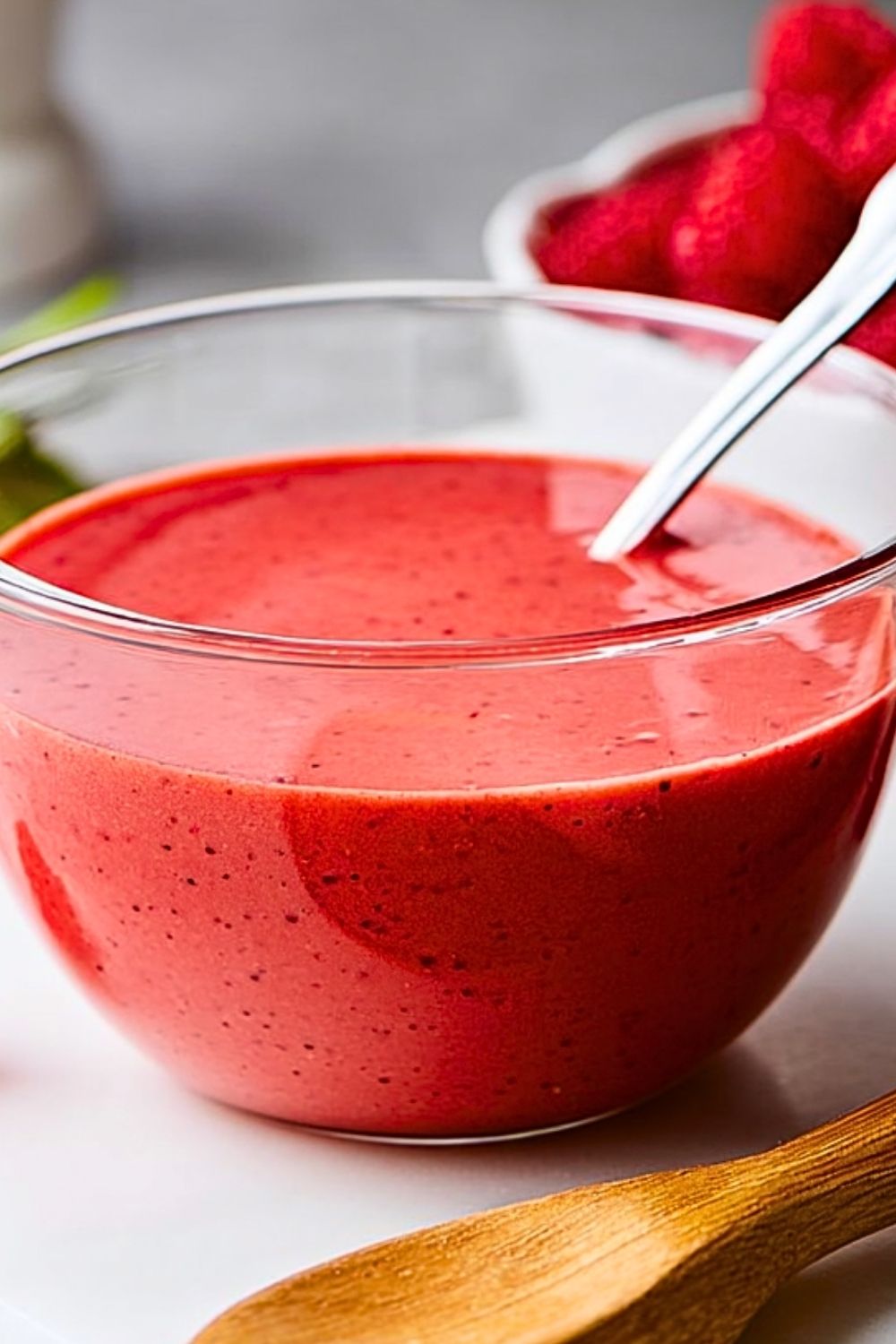 This vinaigrette is not just beautiful — it’s incredibly versatile and easy to make. You only need a handful of ingredients and less than 5 minutes of prep. It works beautifully with everything from leafy greens to grilled chicken or roasted vegetables. The natural sweetness of raspberries balances the vinegar’s acidity, while olive oil brings a smooth richness. You’ll find yourself making it again and again.