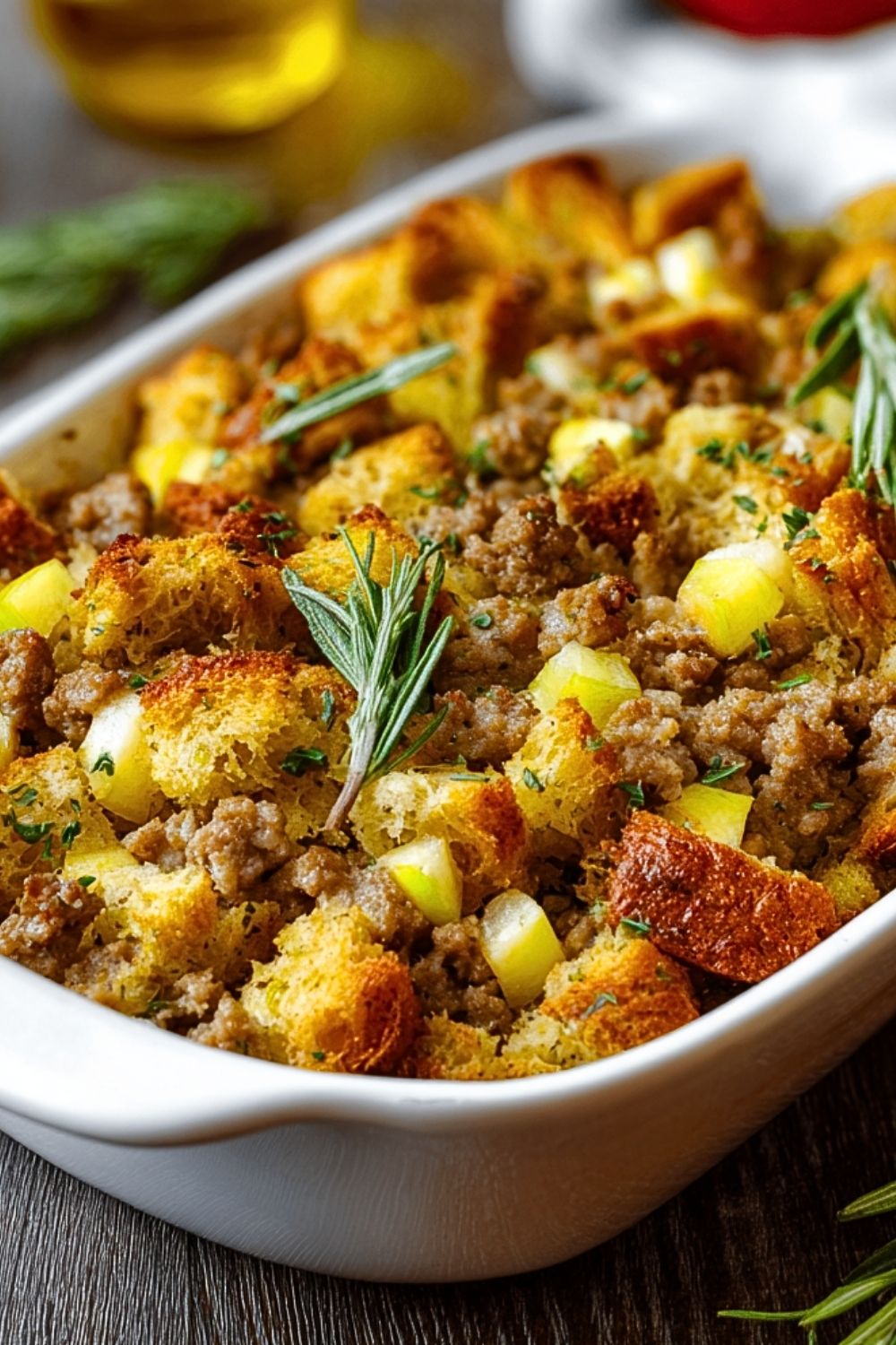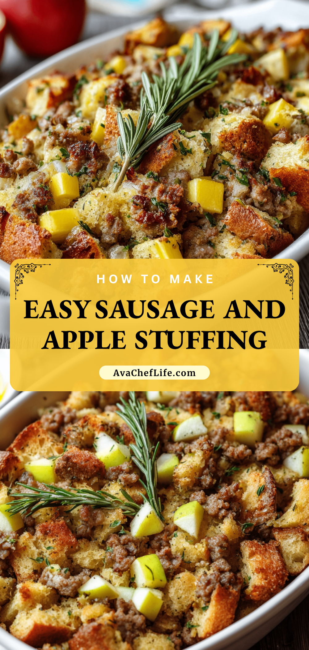 Keywords: easy stuffing recipe, holiday side dish, sausage and apple stuffing, thanksgiving stuffing, comfort food