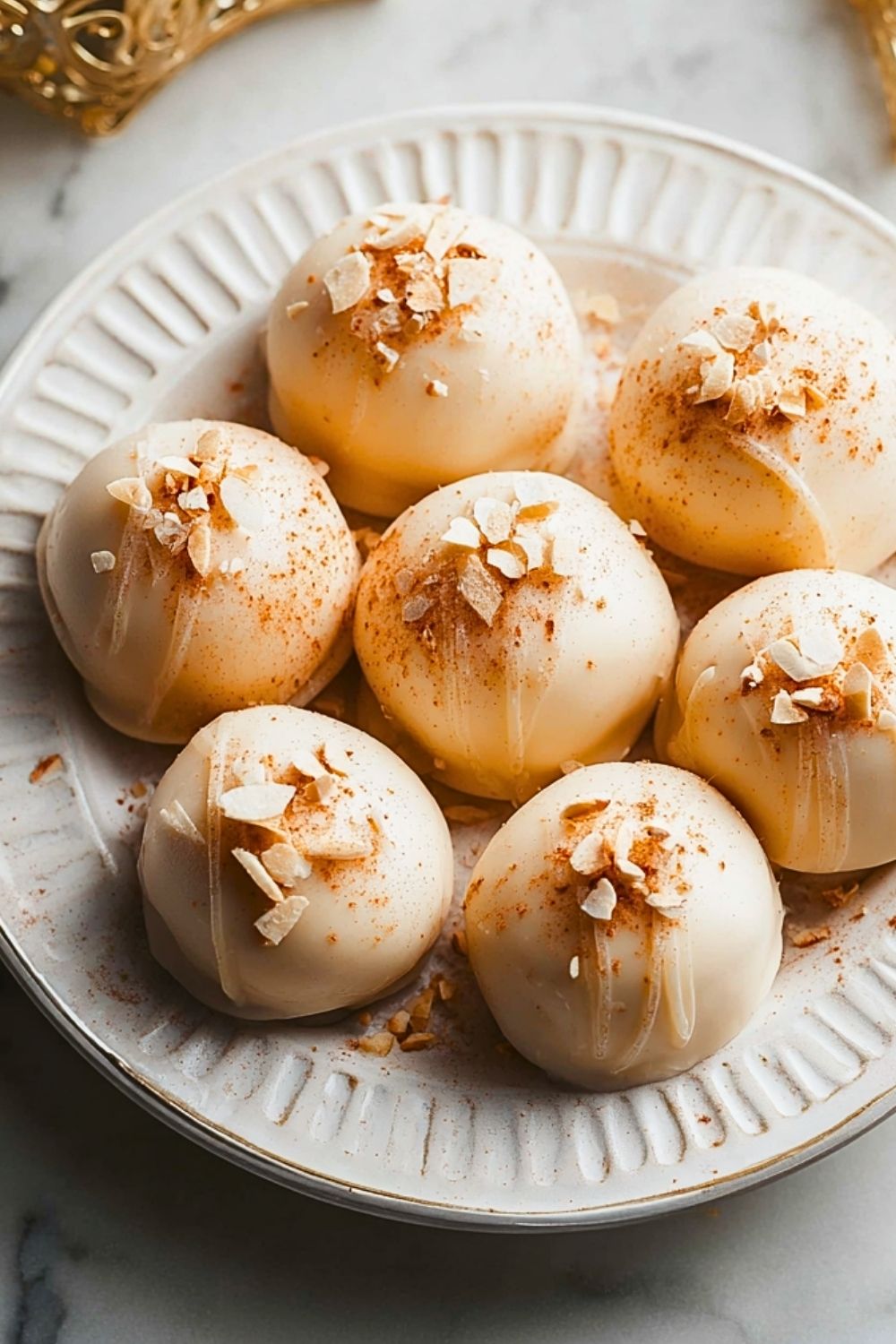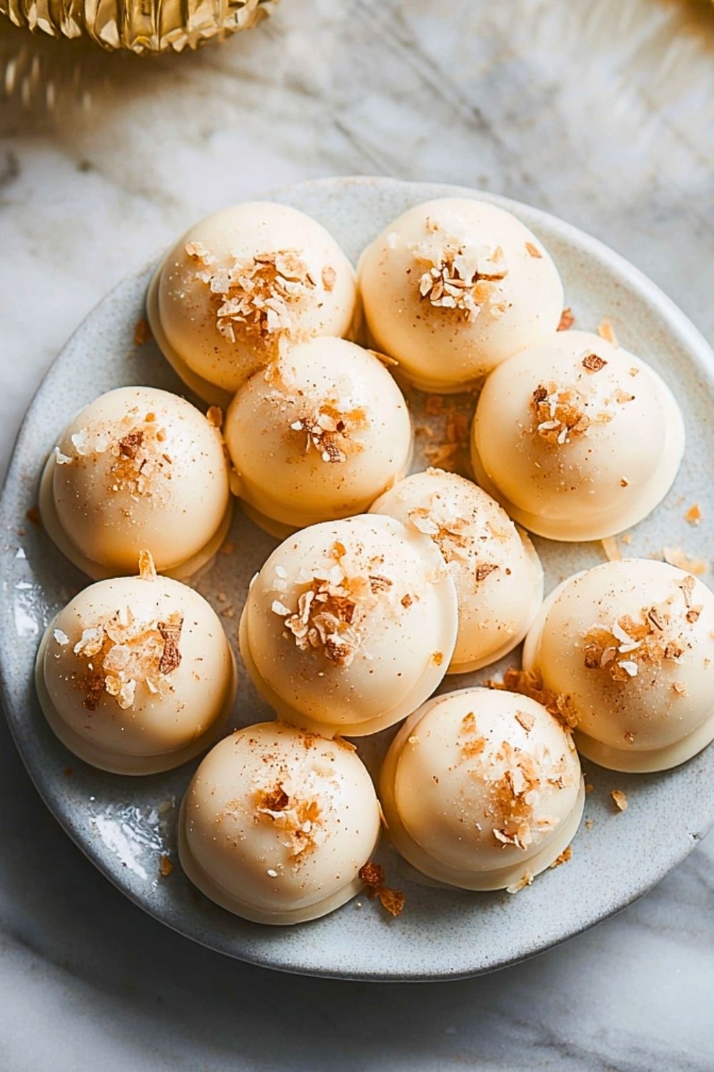 What makes these truffles stand out is their luxurious texture paired with the familiar, cozy flavor of eggnog. Rolled into perfect spheres, dipped in a smooth white chocolate coating, and topped with a dusting of cinnamon or crunchy sugar shards, they look like little snowballs of joy. Whether you’re making them for a cookie platter or simply treating yourself, these truffles are a delightful bite of the season.
