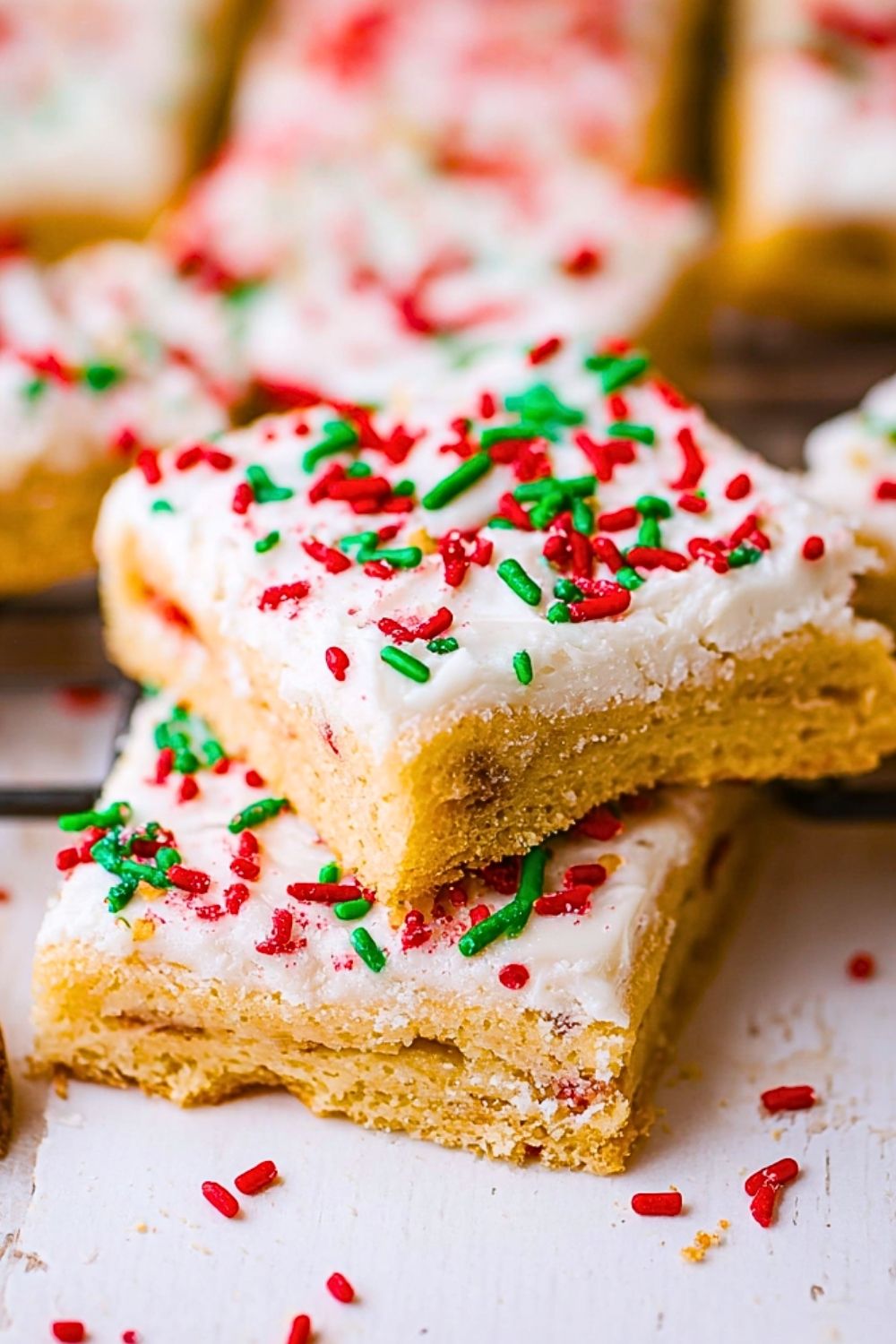 When I first made these for a holiday party, I watched as everyone went back for seconds (and thirds). That’s when I knew these cookie bars were a keeper. They’re not only incredibly delicious, but they’re also easy to make ahead and decorate however you like — red and green sprinkles for Christmas, pastels for Easter, or even themed colors for birthdays. They’ve quickly become a go-to in my kitchen.