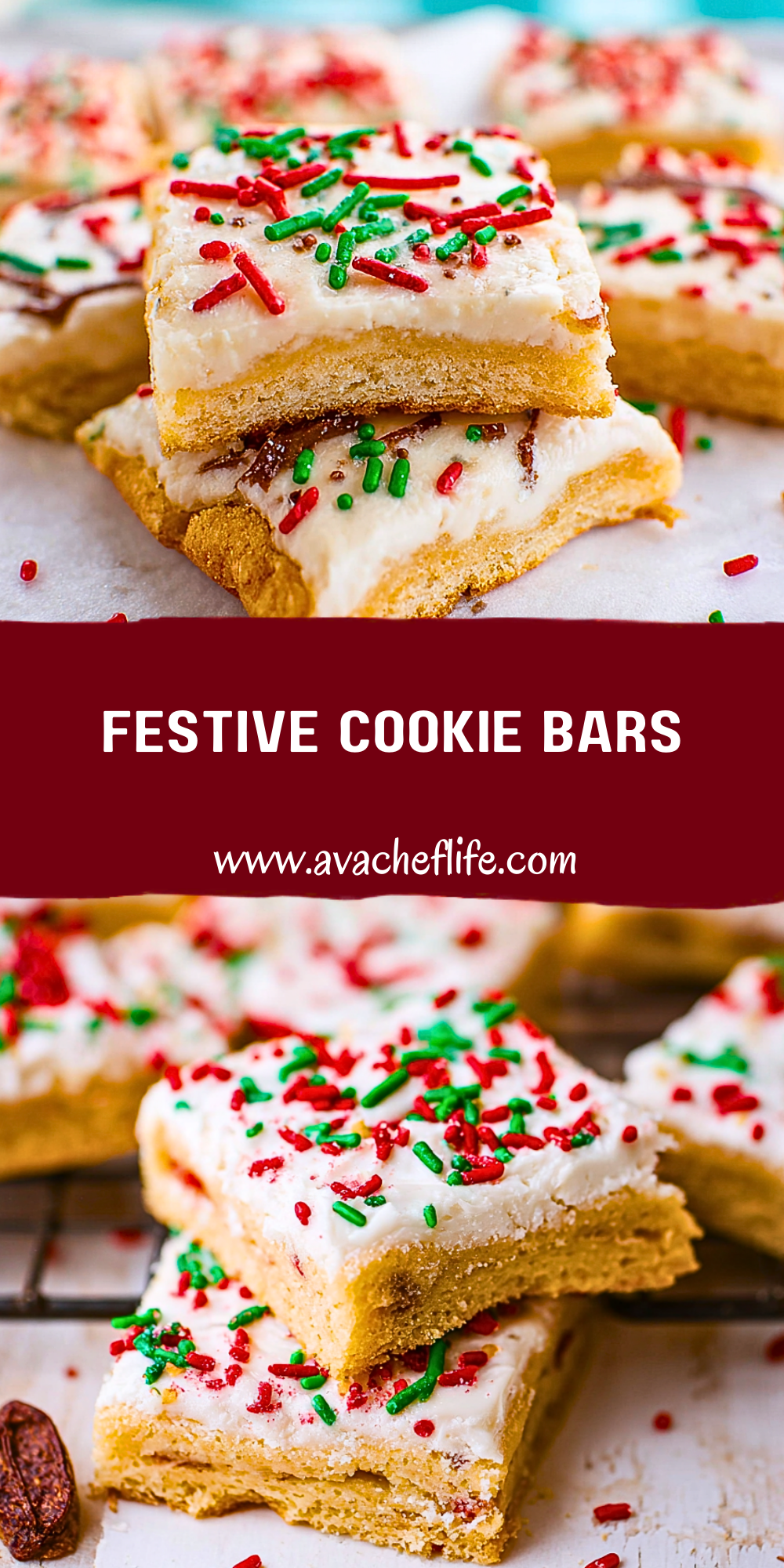 Get ready to bake up some holiday magic with these soft and chewy Festive Cookie Bars! Perfect for any celebration, this easy recipe is topped with sweet buttercream frosting and finished with colorful sprinkles. Whether you’re looking for a quick dessert for a party or an easy recipe to make with kids, these bars are a go-to favorite. Ideal for those searching for quick desserts, easy cookie bars, holiday baking, Christmas treats, or just great baking ideas, this one ticks all the boxes.