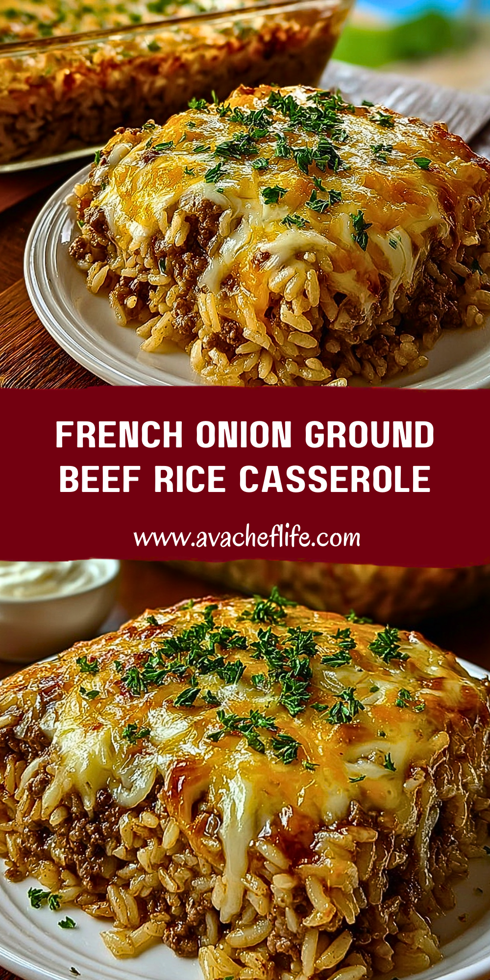 Keywords: ground beef casserole, easy dinner recipe, rice casserole, french onion casserole, comfort food