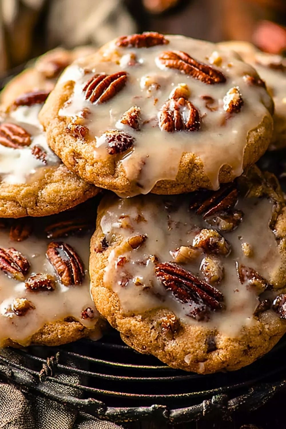 Making these cookies doesn’t take long, and the results are more than worth it. The prep time is about 20 minutes, which includes toasting the pecans and preparing the cookie dough. While the dough doesn’t require chilling, letting the cookies cool before frosting is essential for the glaze to set properly.