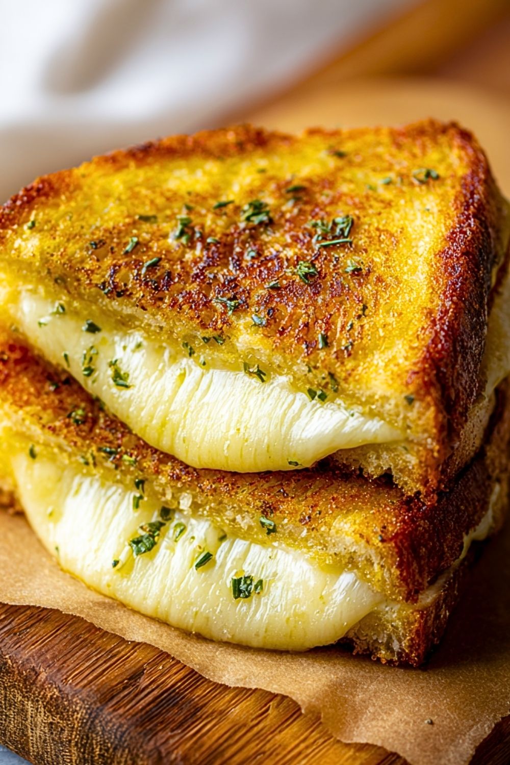 I’ve always had a soft spot for grilled cheese sandwiches, but when I first tried combining it with garlic bread, everything changed. The golden, buttery crust infused with garlic and herbs takes the humble grilled cheese to a whole new level. It’s crispy on the outside, rich with melty cheese in the center, and bursting with the irresistible aroma of garlic and parsley. This isn’t just comfort food—it’s crave-worthy magic made in a skillet.