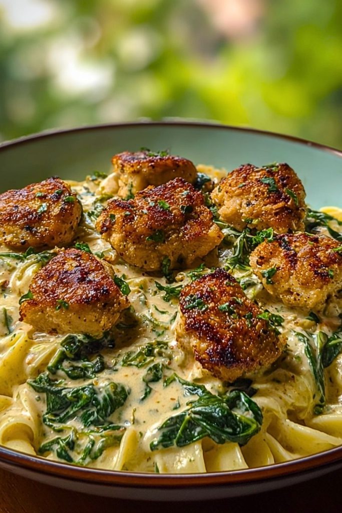 I’m beyond excited to share this Garlic Chicken Bites & Creamy Cajun Spinach Artichoke Alfredo Pasta recipe with you. This dish was born out of a craving for something indulgent, yet packed with bold flavors and just a hint of spice. The tender, golden garlic chicken bites are coated in a crisp crust and sit proudly atop a bed of luscious fettuccine swirled through a Cajun-spiced Alfredo sauce. Add in wilted spinach and artichokes, and you’ve got a comforting plate that feels like a restaurant-quality meal made at home.