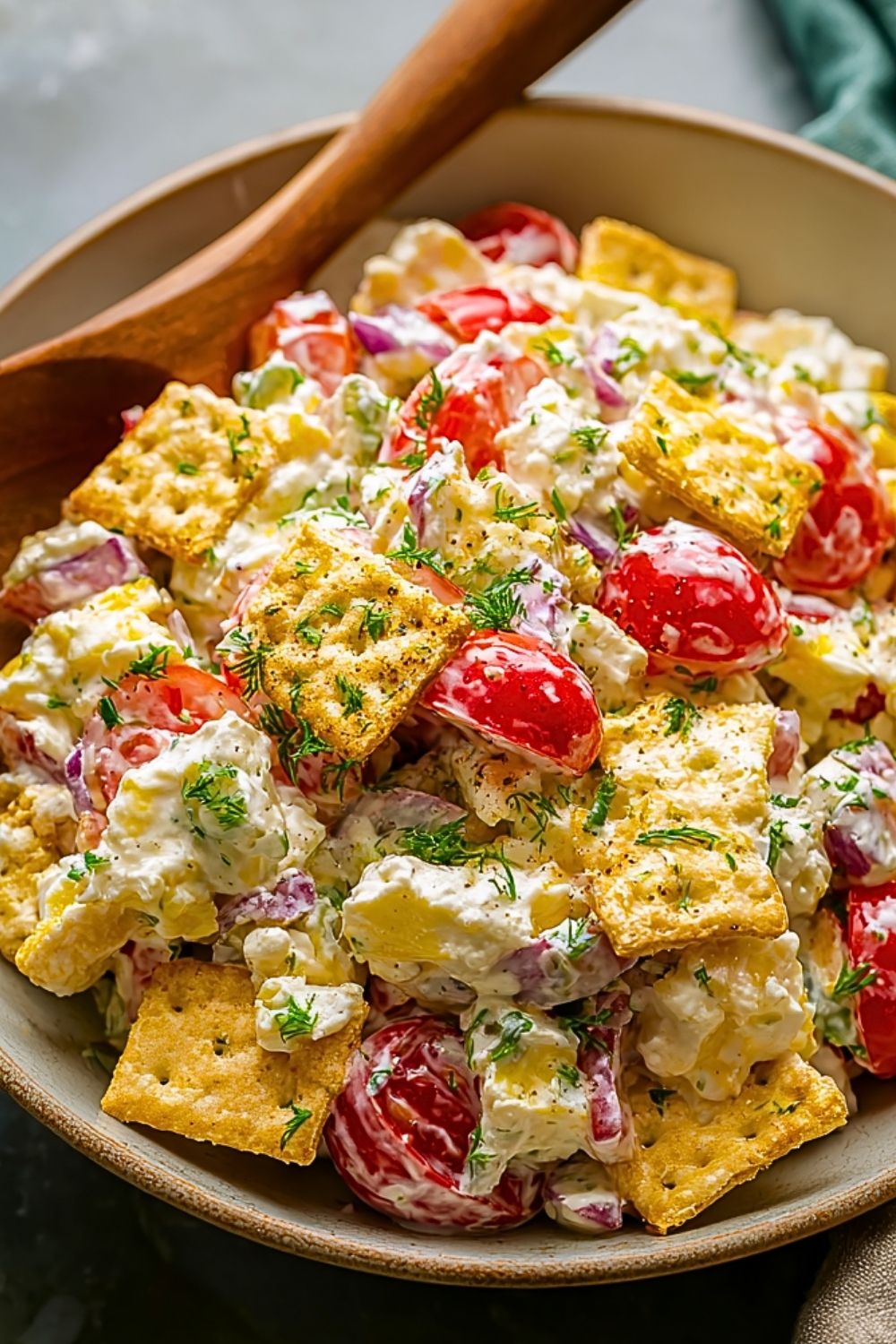Saltine Crackers – These form the crunchy base of the salad. They absorb some of the moisture but still keep their structure, adding a wonderful texture contrast to the creamy components.