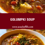 Keywords: golumpki soup, cabbage soup, easy dinner, stuffed cabbage soup, quick soup recipe, comfort food, meal prep, Polish soup