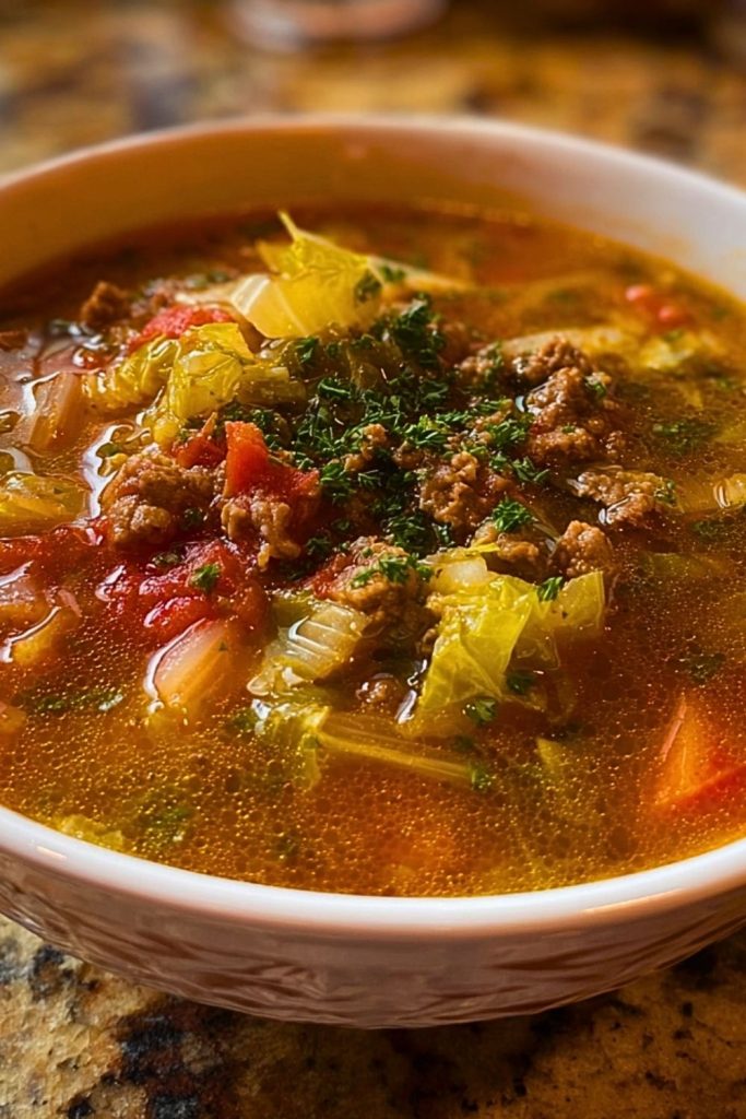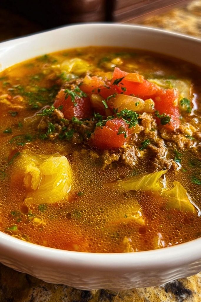 Use lean ground beef to keep the broth rich without becoming greasy. Chop the cabbage into bite-sized pieces so it softens evenly and is easy to eat with a spoon. Browning the beef first adds depth to the flavor, so don’t skip that step. If you prefer a slightly thicker texture, you can simmer the soup uncovered for the last 10–15 minutes. Taste as you go and adjust salt, pepper, or even a dash of vinegar or sugar to balance the acidity of the tomatoes if needed.