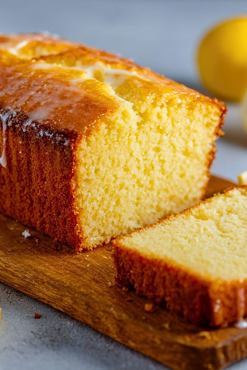 While the loaf cools, whisk together powdered sugar and fresh lemon juice until smooth. Once the loaf is mostly cooled but still slightly warm, drizzle the glaze over the top, letting it soak in.