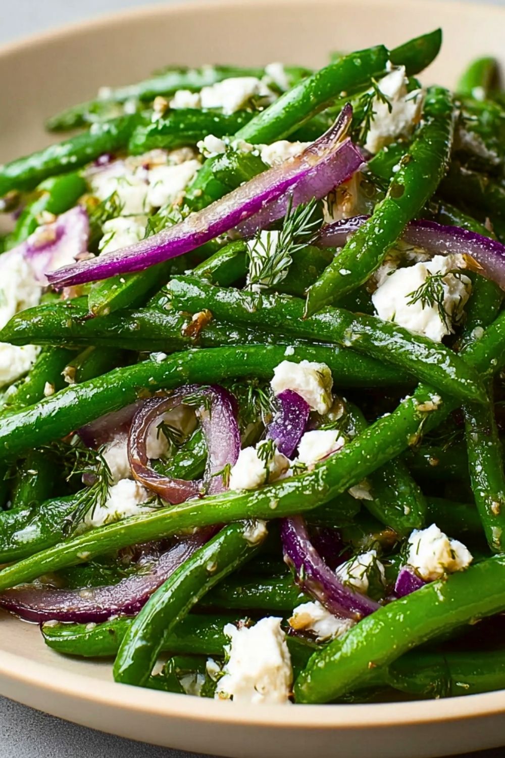 Feta Cheese: Brings a creamy, tangy element that complements the earthiness of the green beans and adds richness to the salad.