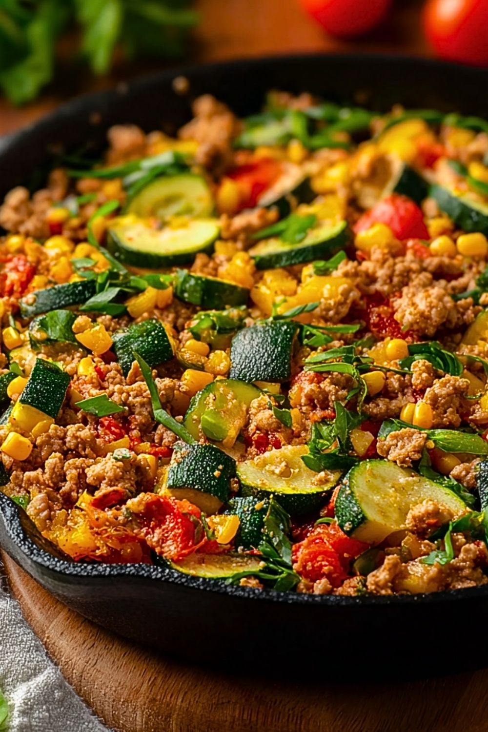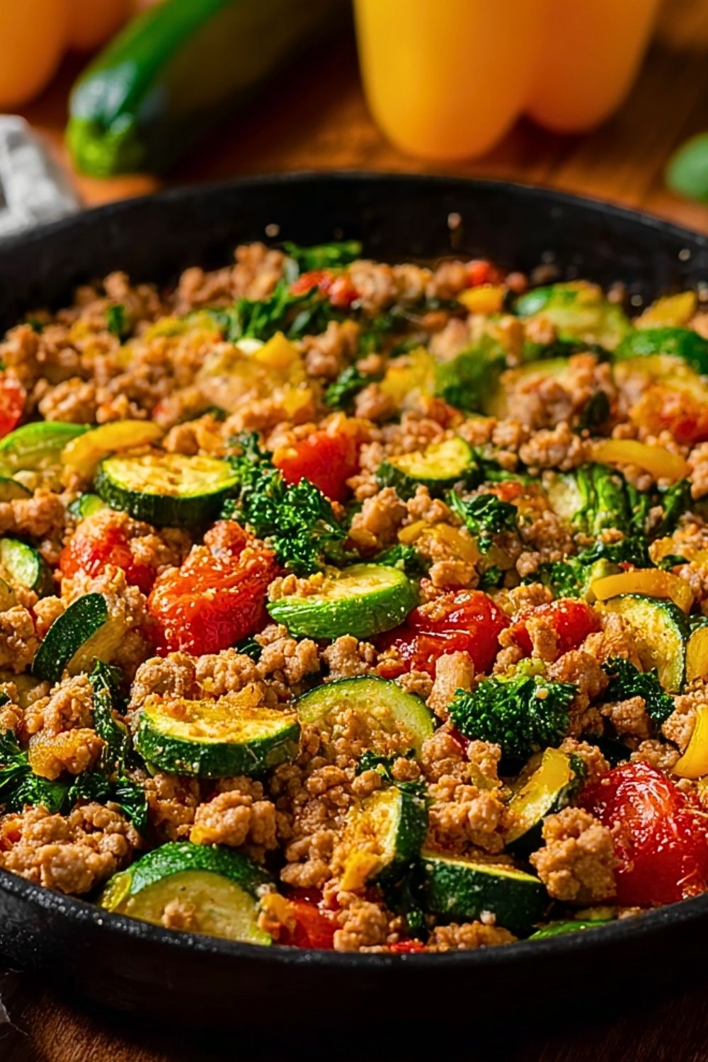 For the best flavor, brown the ground turkey properly—don’t overcrowd the pan, and let it sit untouched for a minute or two before stirring. This helps it develop a deeper flavor. Add vegetables in stages based on their cooking times: start with the firmer ones like peppers and zucchini, then stir in tender greens like spinach at the end to avoid overcooking. Taste as you go to adjust seasoning, and don’t skip a sprinkle of fresh herbs or a touch of lemon juice to brighten things up just before serving.