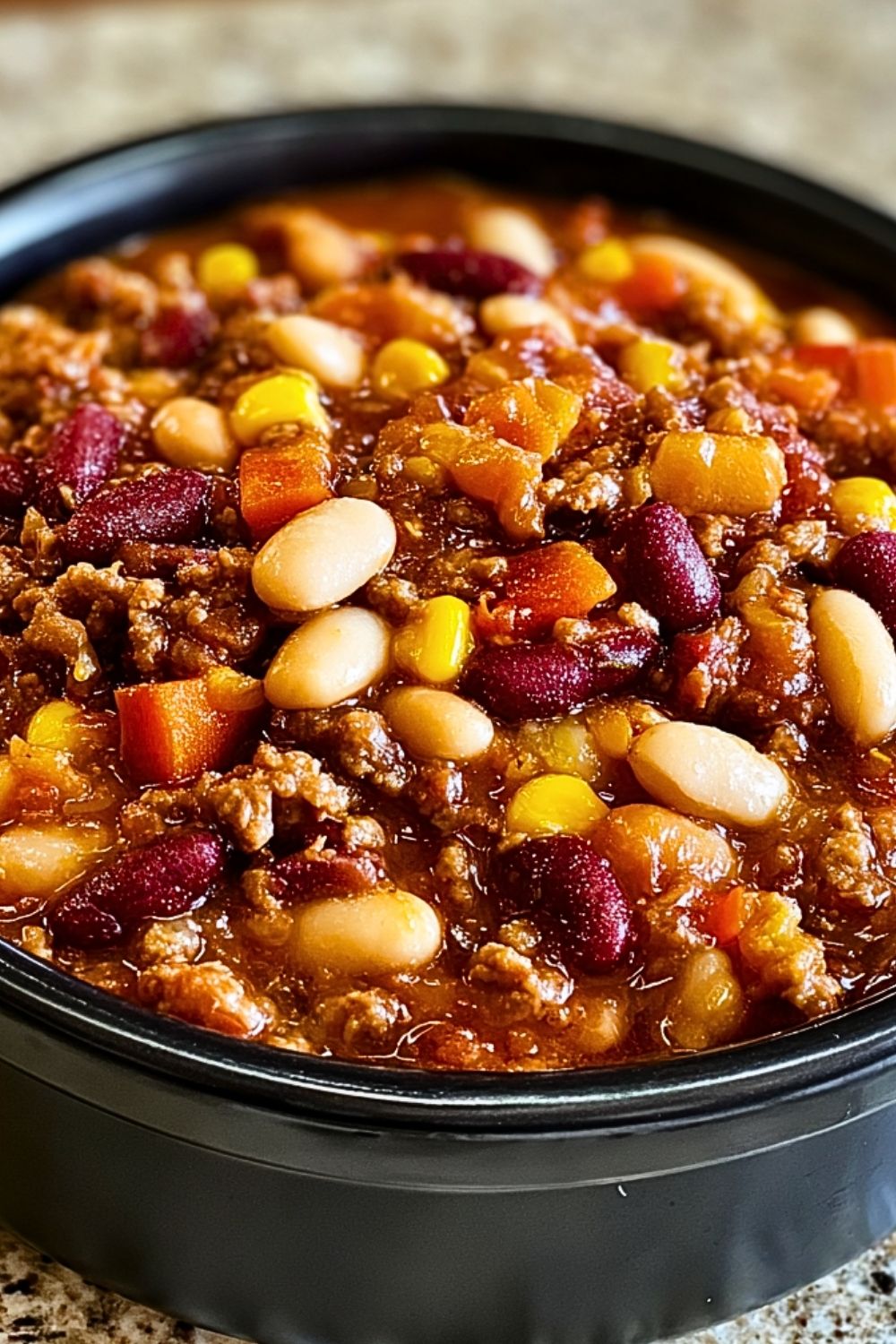 This dish is the very definition of comfort food with a rugged twist. Hearty Slow Cooker Cowboy Beans combine the bold, savory flavor of ground beef with the sweetness of baked beans, the earthiness of kidney and pinto beans, and the tang of a rich tomato-based sauce. Throw in some bell peppers, onions, and just the right touch of seasoning, and you’ve got yourself a one-pot meal that feels like a warm hug after a long day.