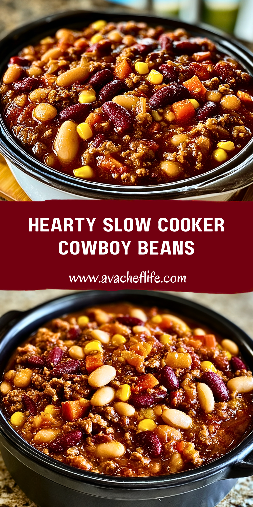 Hearty Slow Cooker Cowboy Beans only get better with time, making them a perfect make-ahead dish. As the beans sit, they soak up more of the smoky, sweet, and tangy sauce, enhancing every bite. This recipe is also highly adaptable—swap ground beef with ground turkey or plant-based meat alternatives for a lighter or vegetarian version. If you prefer thicker beans, remove the lid in the last 30 minutes of cooking to reduce the liquid.