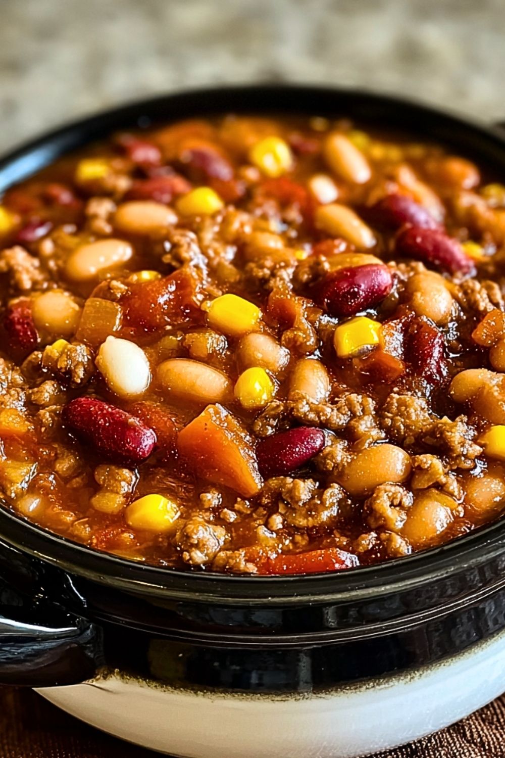 Looking for a warm, hearty meal that practically cooks itself? These Hearty Slow Cooker Cowboy Beans are just what you need. Packed with ground beef, three types of beans, bell peppers, tomatoes, and a rich, smoky barbecue sauce, this dish is the perfect blend of sweet, savory, and tangy. Whether you’re prepping a quick dinner, bringing a comforting potluck dish, or stocking up on easy meal prep ideas, this easy recipe delivers bold flavor with minimal effort. A standout choice for dinner ideas, hearty food ideas, or a no-fuss slow cooker meal.