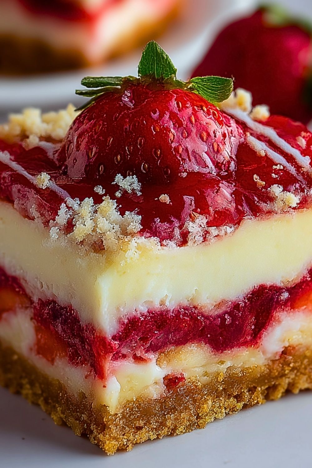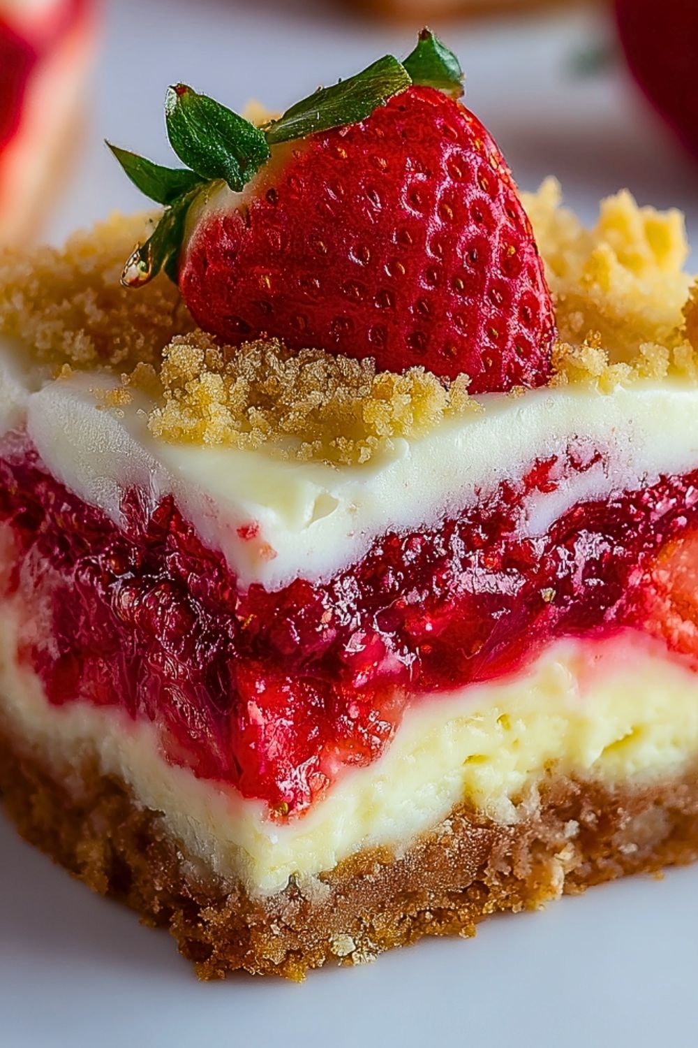 Every bite of these bars feels like a little celebration. The buttery graham cracker crust provides the perfect base, topped with luscious cheesecake, a vibrant strawberry filling, and a soft crumble on top for texture. These bars are perfect for picnics, potlucks, or a sweet ending to a weekday dinner. They look stunning and taste even better—trust me, they’ll disappear fast!