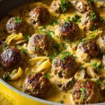 From the first spoonful, you get layers of rich flavor — seared meatballs that are tender inside and golden outside, and a silky sauce made with mushrooms, onions, sour cream, and beef broth. It’s not just tasty, it’s comforting. You’ll love how it comes together in one pan, making cleanup a breeze, and how well it pairs with noodles, rice, or even mashed potatoes.