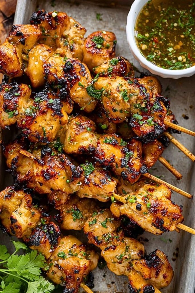 Cut the chicken into uniform, bite-sized pieces to ensure they cook at the same rate. Let the meat marinate for at least 30 minutes (but preferably a few hours) to allow the flavors to fully absorb. If you’re using wooden skewers, soak them in water for at least 30 minutes to prevent burning during grilling. Make sure the grill or pan is hot before placing the skewers – this helps achieve that golden, slightly charred exterior. And don’t crowd the skewers on the grill – give each one enough space to cook properly and develop those perfect grill marks.