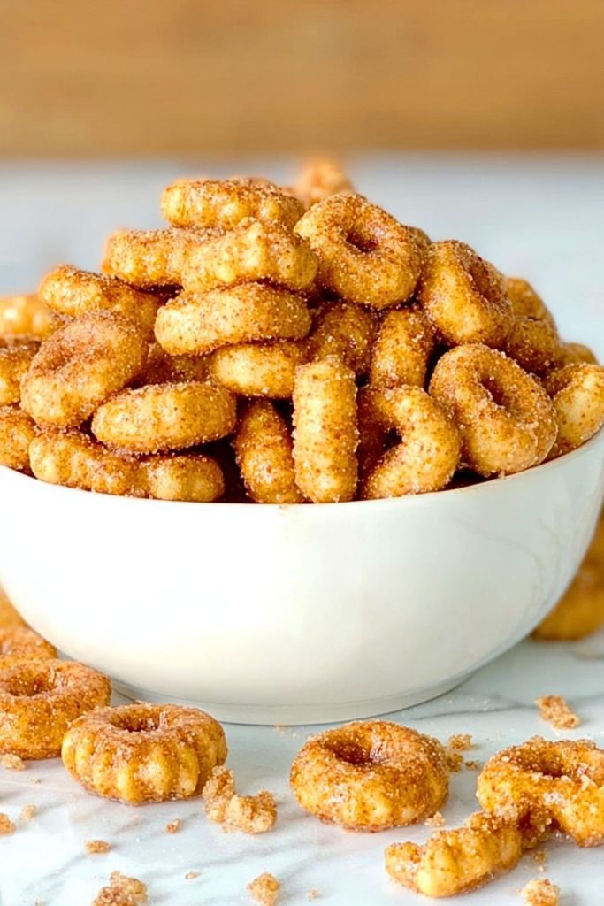 Melt the butter slowly to avoid scorching it, and make sure it’s evenly distributed over the cereal before adding the sugar and cinnamon mix. Gently fold everything together to keep the cereal from breaking. Let them cool slightly before serving to allow the coating to set, which also makes them less sticky and more snackable. A parchment-lined baking sheet can be helpful for spreading them out to cool evenly.
