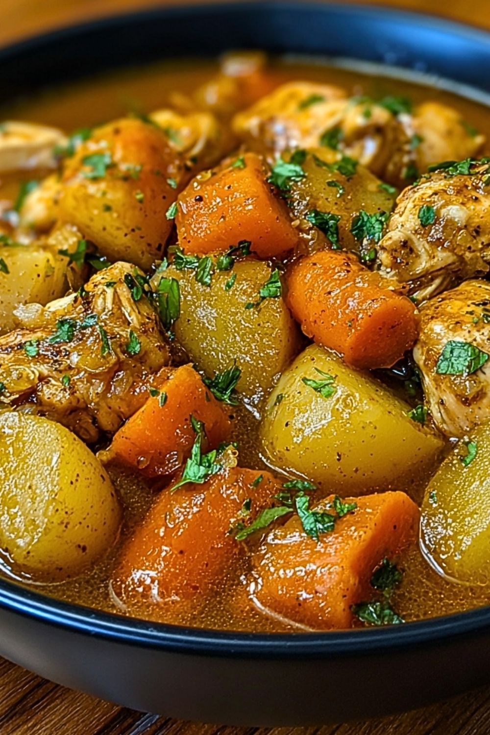 - Boneless, skinless chicken thighs or breasts – The core protein of the dish, providing hearty, tender bites that soak up all the savory stew flavors.