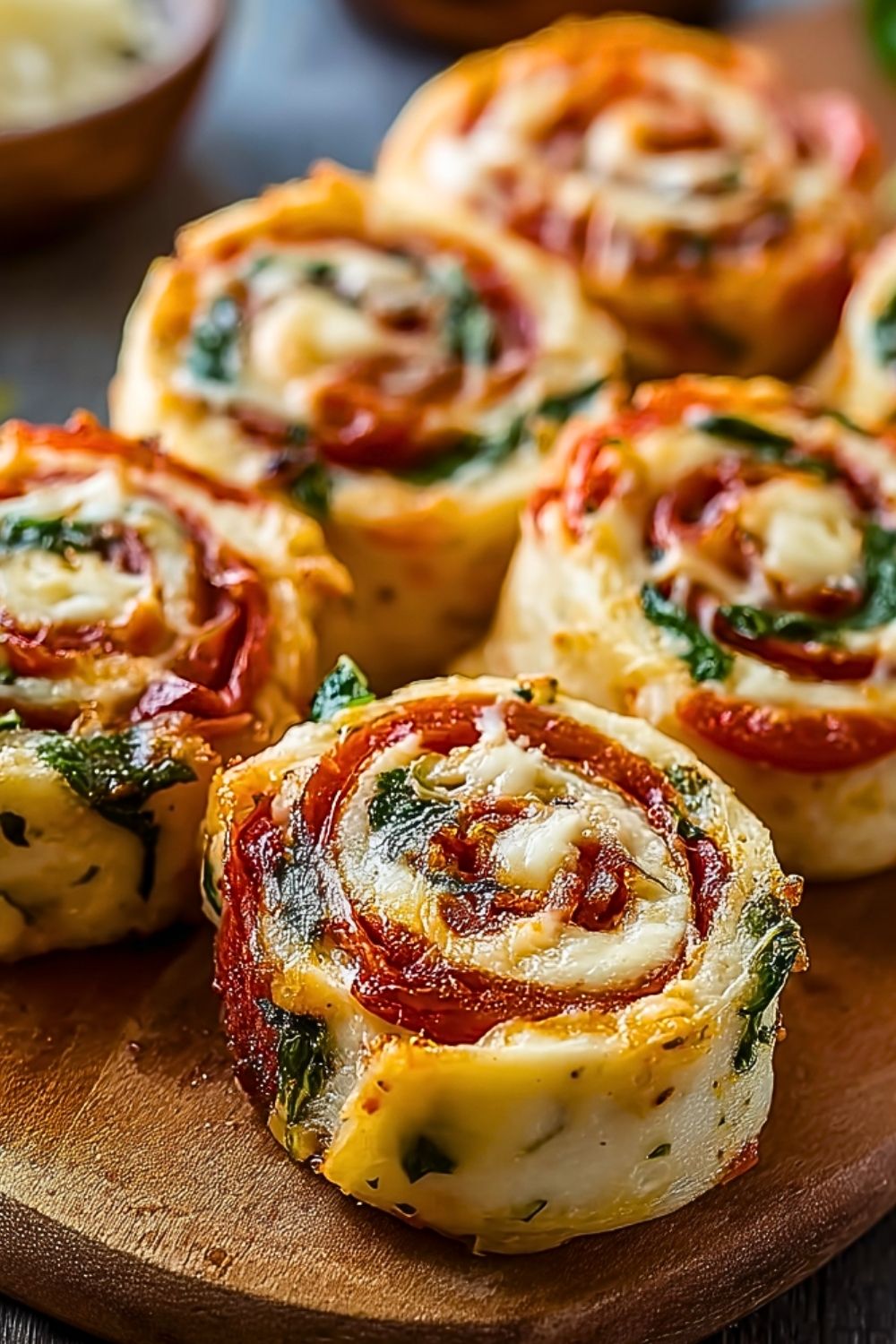 Freezing: These pinwheels freeze surprisingly well. Once baked and cooled, place them on a baking sheet to flash freeze for 1–2 hours, then transfer to a zip-top freezer bag. Reheat from frozen in the oven at 375°F (190°C) for about 10–12 minutes.