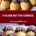 Keywords: italian butter cookies, holiday cookies, chocolate dipped cookies, easy cookie recipe, piped cookies
