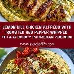 Lemon Dill Chicken Alfredo with Roasted Red Pepper Whipped Feta & Crispy Parmesan Zucchini