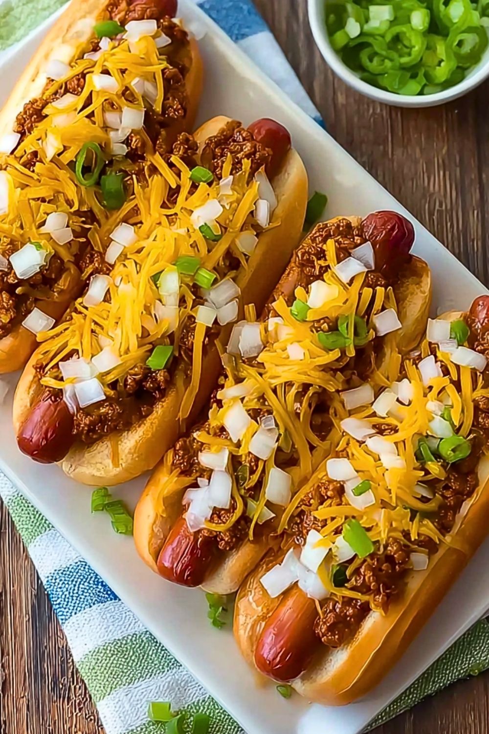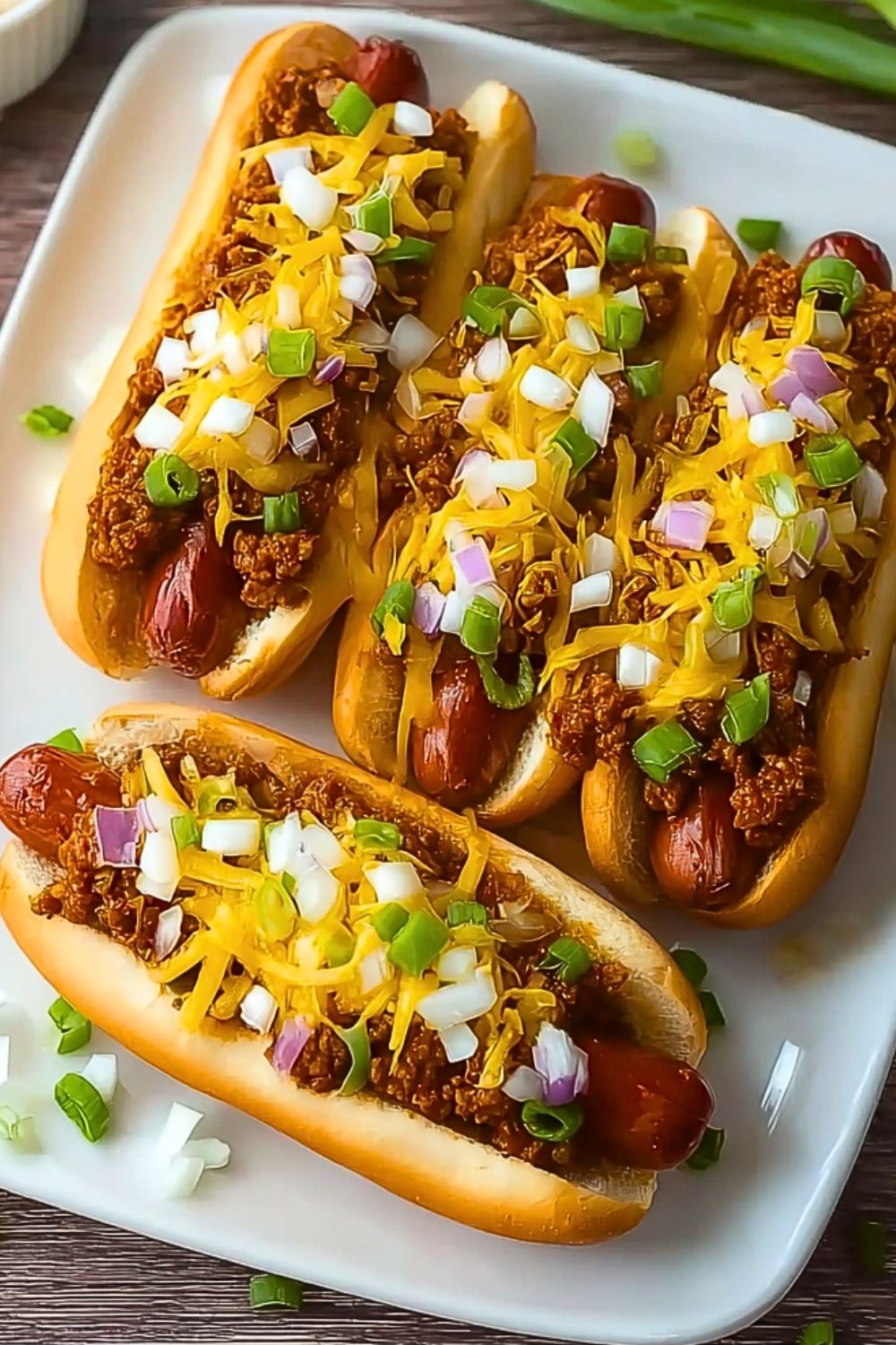 Get ready to impress with these irresistibly loaded Crockpot Chili Cheese Dogs. This easy dinner idea is a total crowd-pleaser packed with bold flavors and minimal hands-on effort. Featuring slow-cooked, savory chili smothered over juicy hot dogs, topped with melted cheddar and fresh onions, this is the ultimate comfort food. Perfect for game day, parties, or a cozy family dinner.