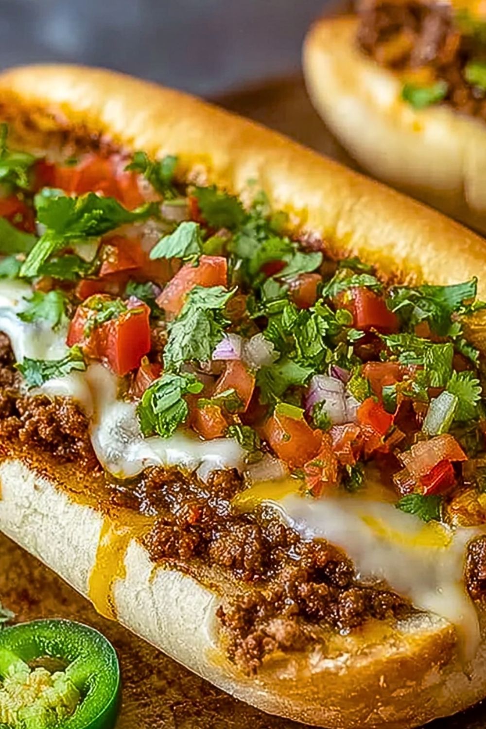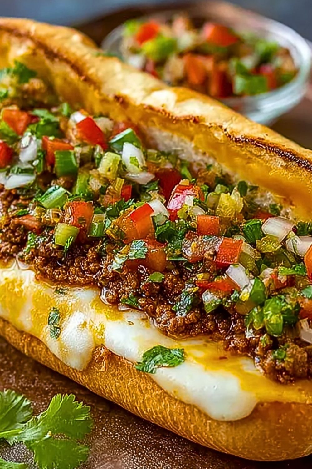 This sandwich is all about bold, layered flavors. The savory chopped beef, gooey melted cheese, and fresh pico-style toppings create the perfect balance of richness and freshness. It’s quick to prepare, customizable, and perfect for anyone craving something hearty and exciting.