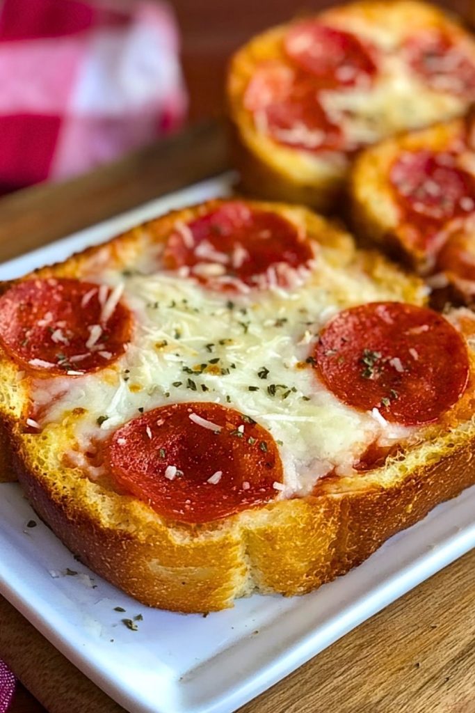 Keywords: easy recipe, mini pizza, garlic toast pizza, quick snack, food ideas