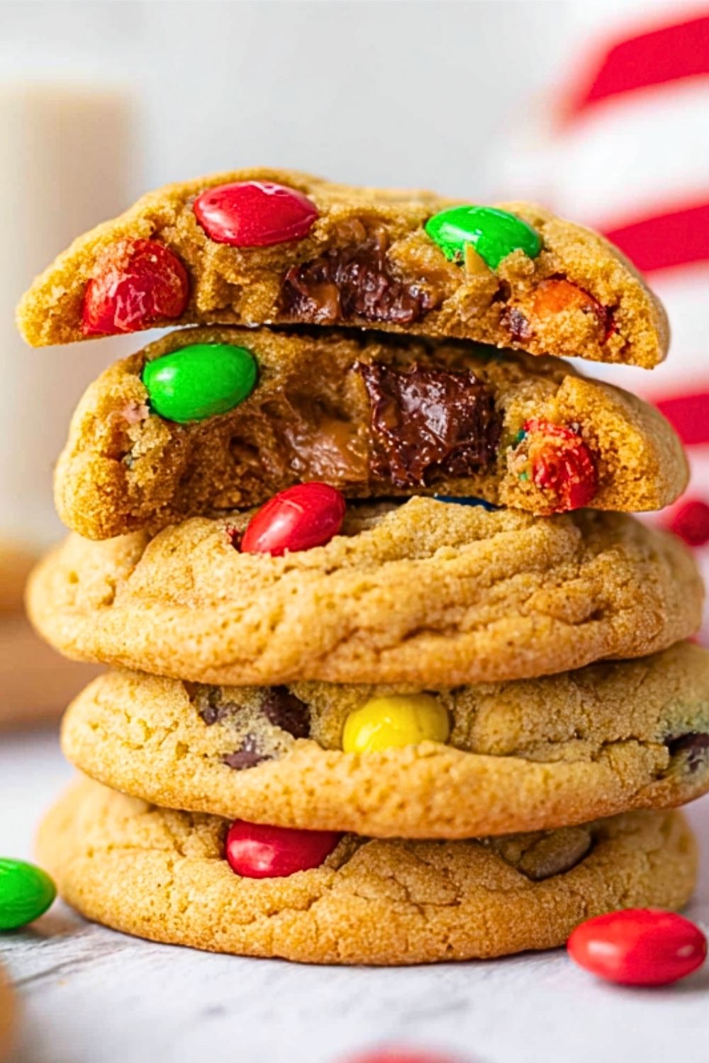 What I especially love about these cookies is how nostalgic they feel. Every bite takes me back to Christmas baking sessions as a kid—sneaking dough from the bowl, pressing M&Ms on top of freshly scooped cookies, and watching them puff up perfectly in the oven. Whether you’re making them for a cookie exchange, a cozy movie night, or just because you deserve a sweet treat, these cookies deliver big on flavor and fun.