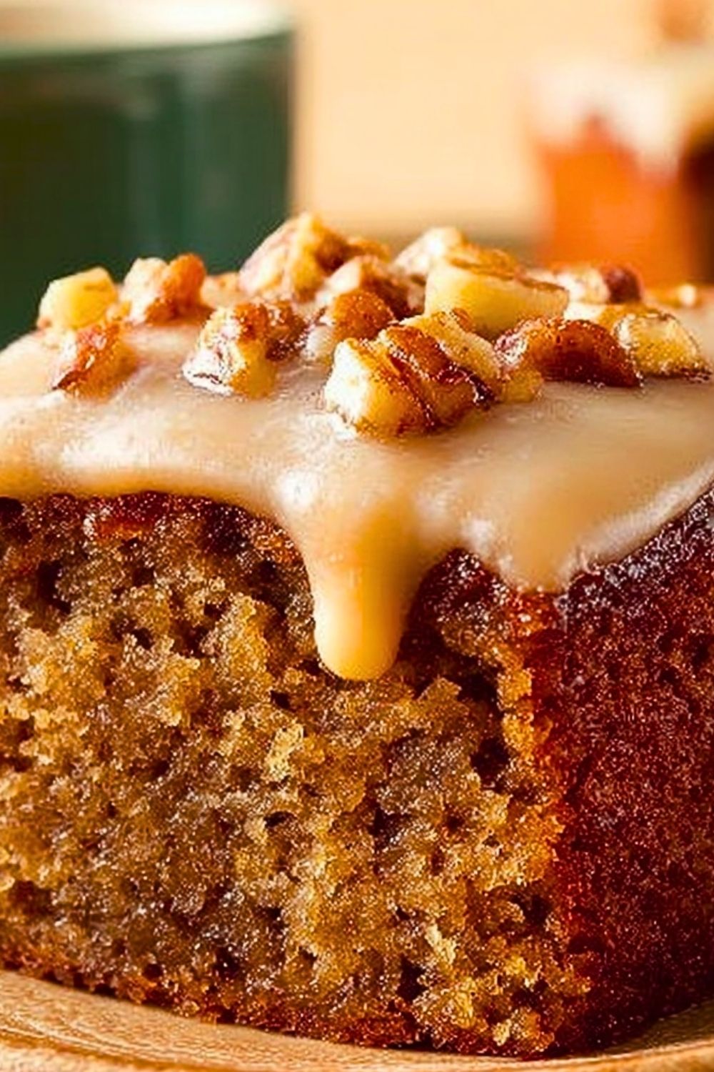 Let the cake cool completely in the pan. Once cool, you can frost it with your favorite glaze—brown sugar glaze works beautifully here—and sprinkle more walnuts on top if desired.