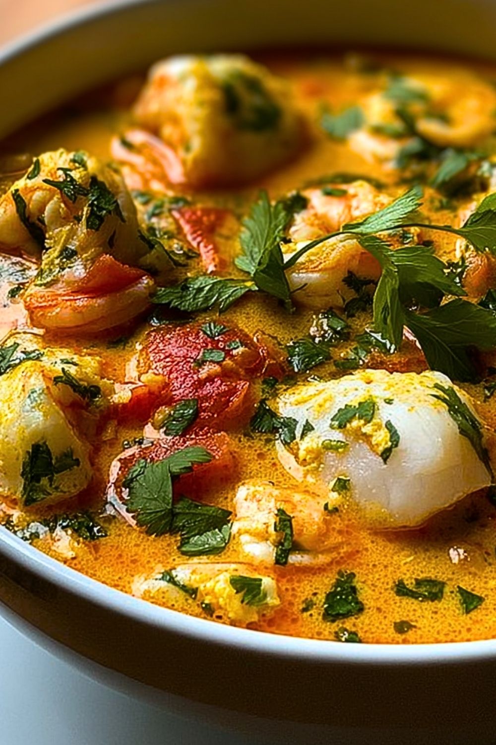 Avoid boiling when reheating—gentle simmering ensures the fish and shrimp remain tender. Add a splash of water or coconut milk if the stew thickened too much in the fridge.