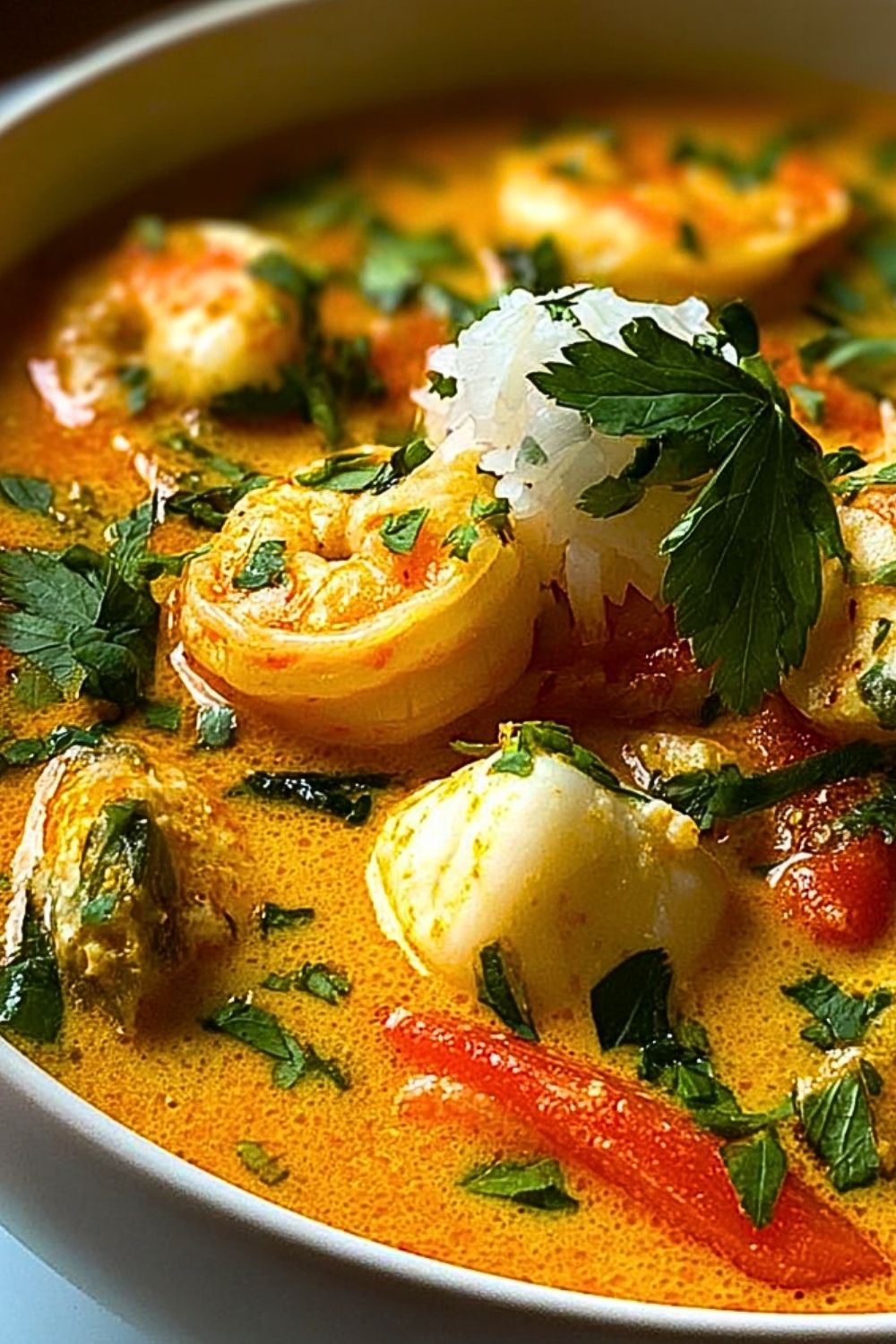 Freeze in portion-sized containers for up to 2 months. Reheat gently on the stovetop to preserve the texture of the seafood.