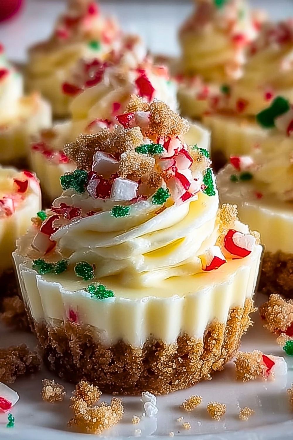 These mini cheesecakes are incredibly easy to prepare, making them ideal for busy holiday schedules. They require no baking, which frees up your oven for other holiday dishes. Their individual size makes them perfect for serving and sharing, and they’re endlessly customizable depending on your favorite flavors or festive toppings. Plus, their vibrant red and green sprinkles make them a showstopper on any dessert table.