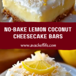 Keywords: lemon dessert, no bake cheesecake, coconut bars, easy recipe, summer dessert