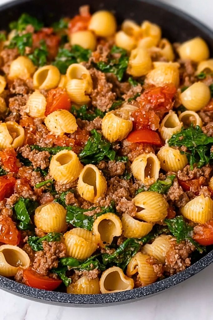 This pasta dish is the perfect blend of cozy and clean eating. It’s high in protein, filled with fiber from the greens, and doesn’t rely on heavy cream or cheese to be flavorful. Because it’s made in one pan, the pasta absorbs all the goodness from the beef and tomatoes, giving you maximum taste with minimum effort. Whether you’re meal-prepping for the week or feeding a hungry family, this one’s going to be a staple.