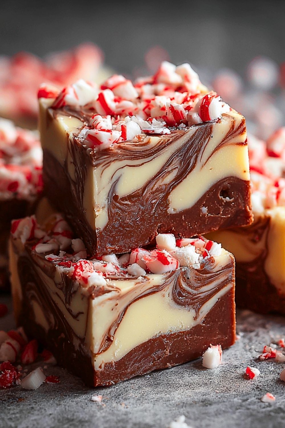Keywords: peppermint fudge, easy holiday dessert, Christmas sweets, no bake fudge, chocolate peppermint swirl, festive dessert, homemade fudge
