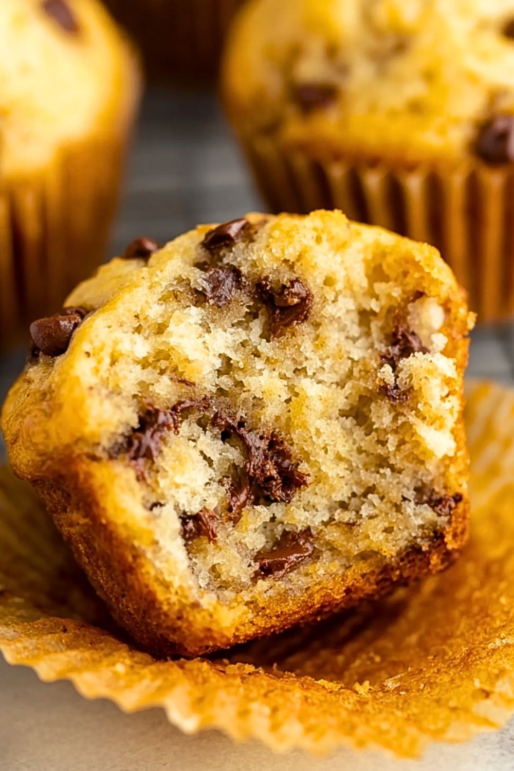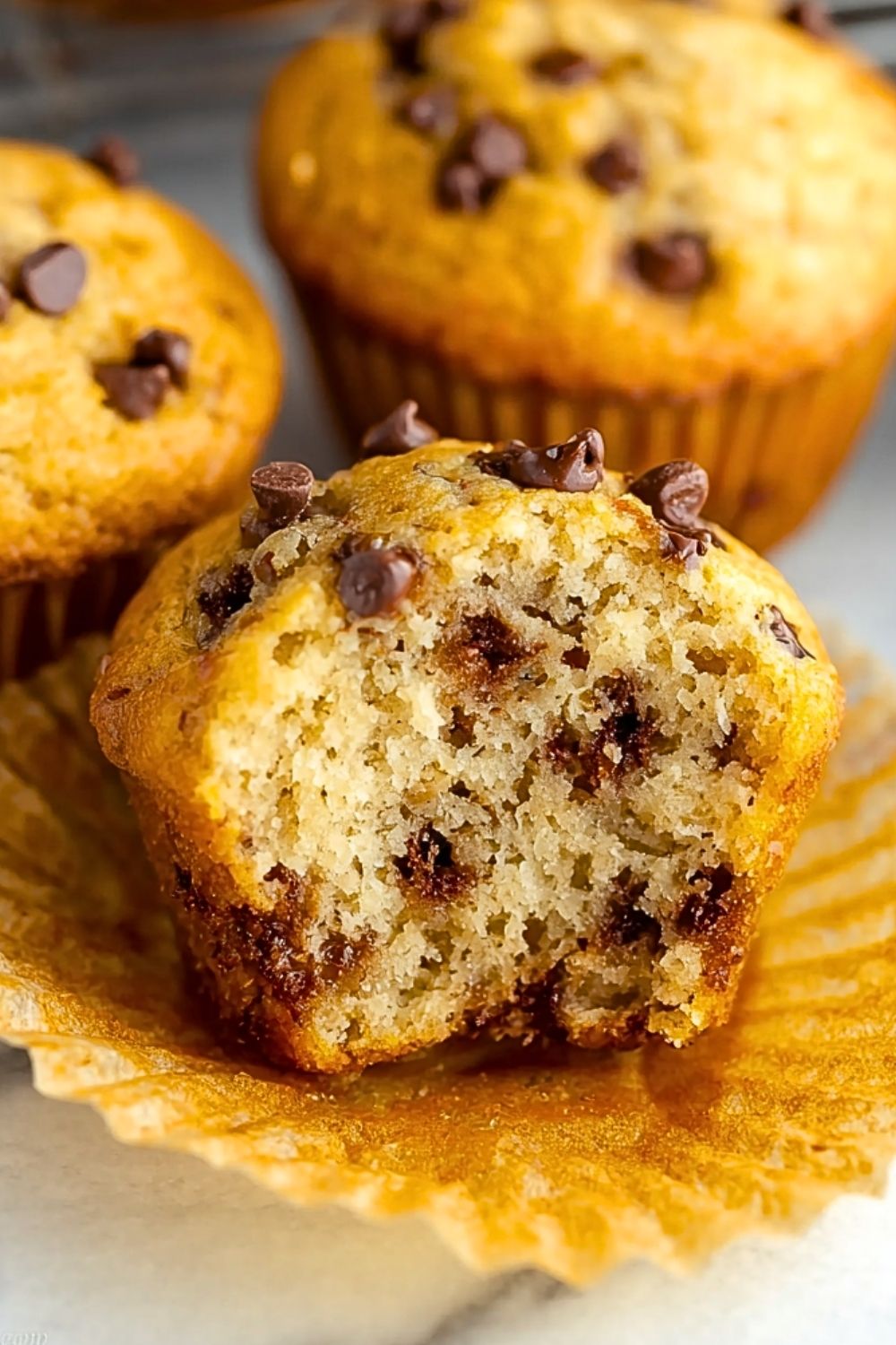 Use bananas that are heavily speckled or nearly black—these are the sweetest and most flavorful. Don’t overmix the batter once you add the dry ingredients to the wet; just stir until combined to avoid dense muffins. Tossing your chocolate chips in a little flour can prevent them from sinking to the bottom. And if you’re looking for a little extra bakery-style flair, sprinkle a few chocolate chips on top before baking so they stay beautifully visible and slightly melty.