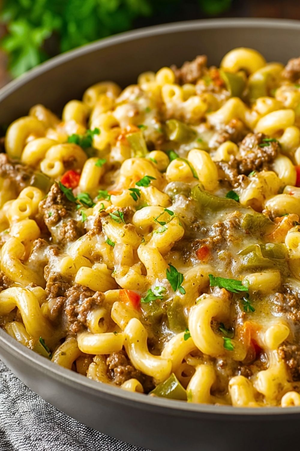 Elbow macaroni works beautifully for this dish because it holds onto the creamy, cheesy sauce so well. But you can absolutely substitute it with penne, rotini, or shells if that’s what you have on hand. The goal is to choose a shape that grabs the sauce and nestles in bits of beef and peppers in every bite.