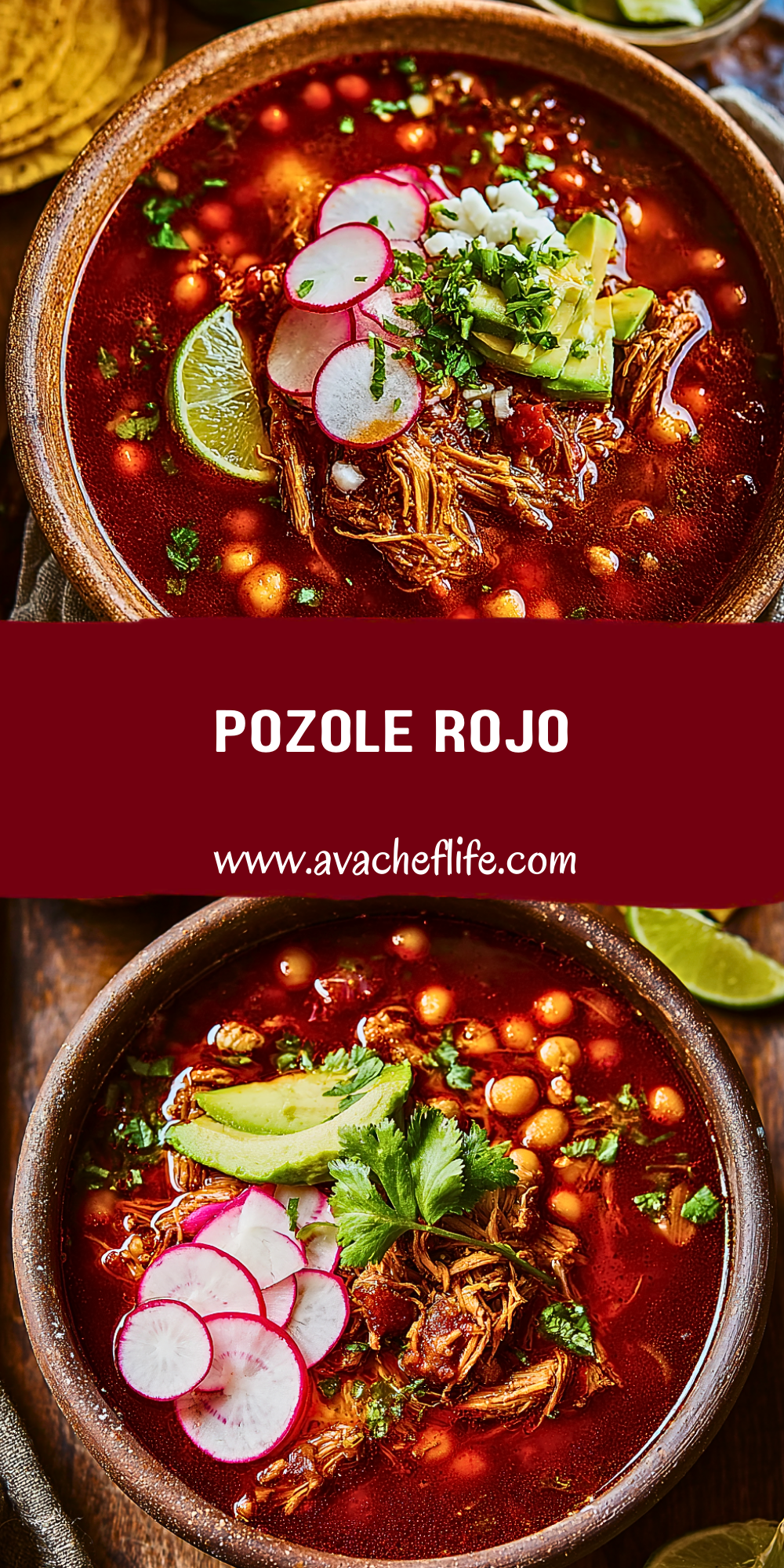 Keywords: pozole rojo, Mexican soup, pork pozole, hominy stew, easy dinner