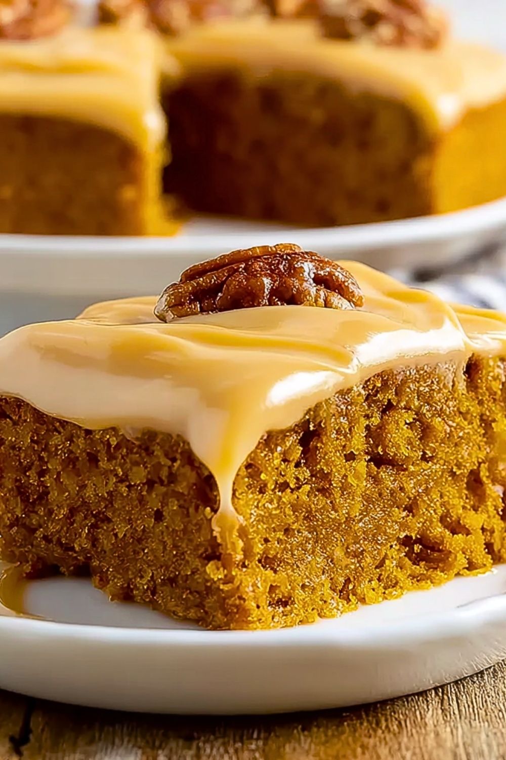 This cake actually gets even better after resting for a few hours or overnight, allowing the spices to fully develop and the texture to settle into that perfect moist crumb. If you want to intensify the flavor further, toast the pecans before folding them into the batter. They add a warm, nutty crunch that pairs beautifully with both the pumpkin and caramel.