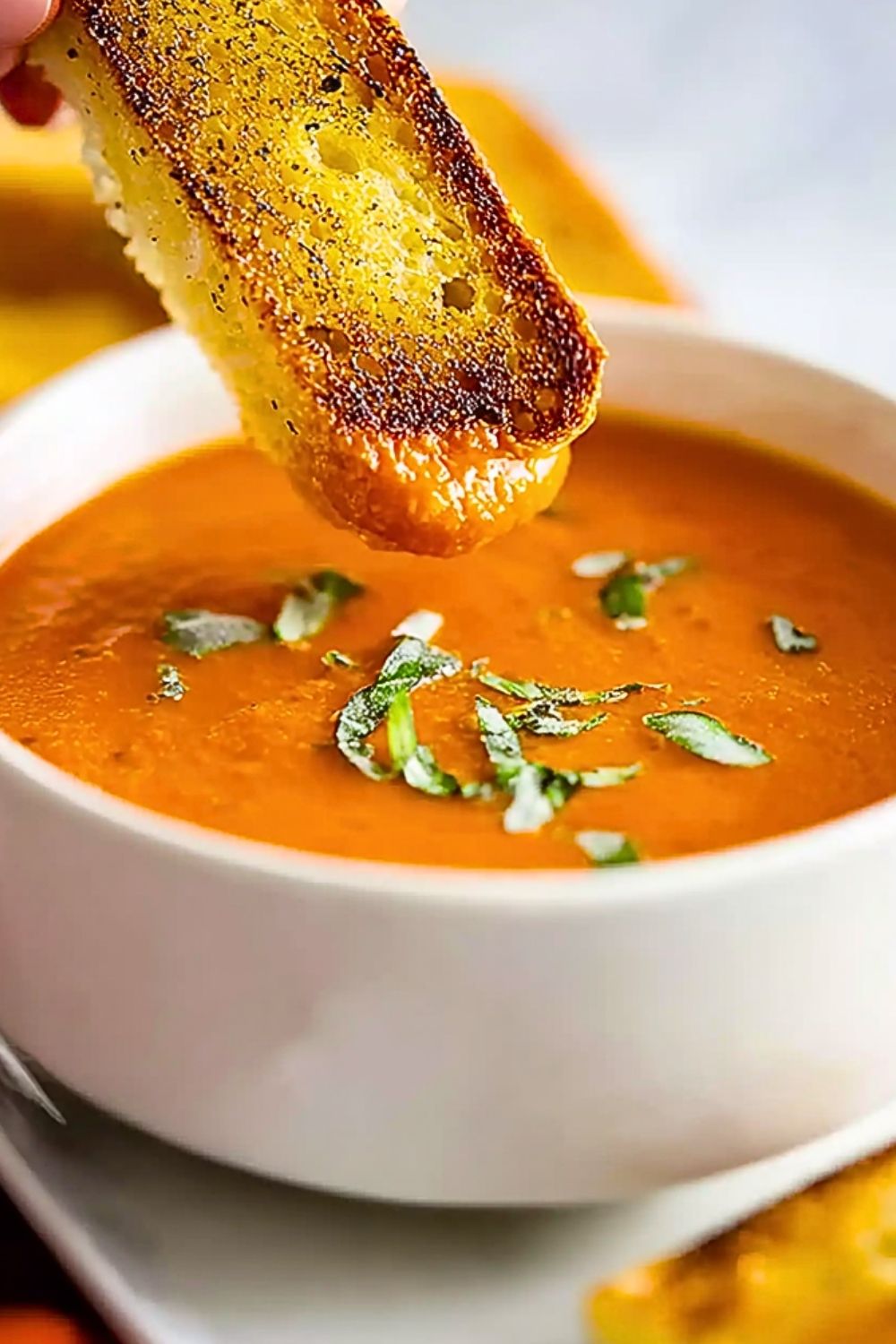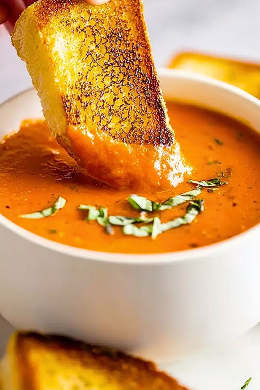 Ladle the soup into bowls and garnish with a swirl of cream, a drizzle of olive oil, or a few torn basil leaves. Serve hot with toasted bread or a grilled cheese sandwich for the ultimate comfort combo.