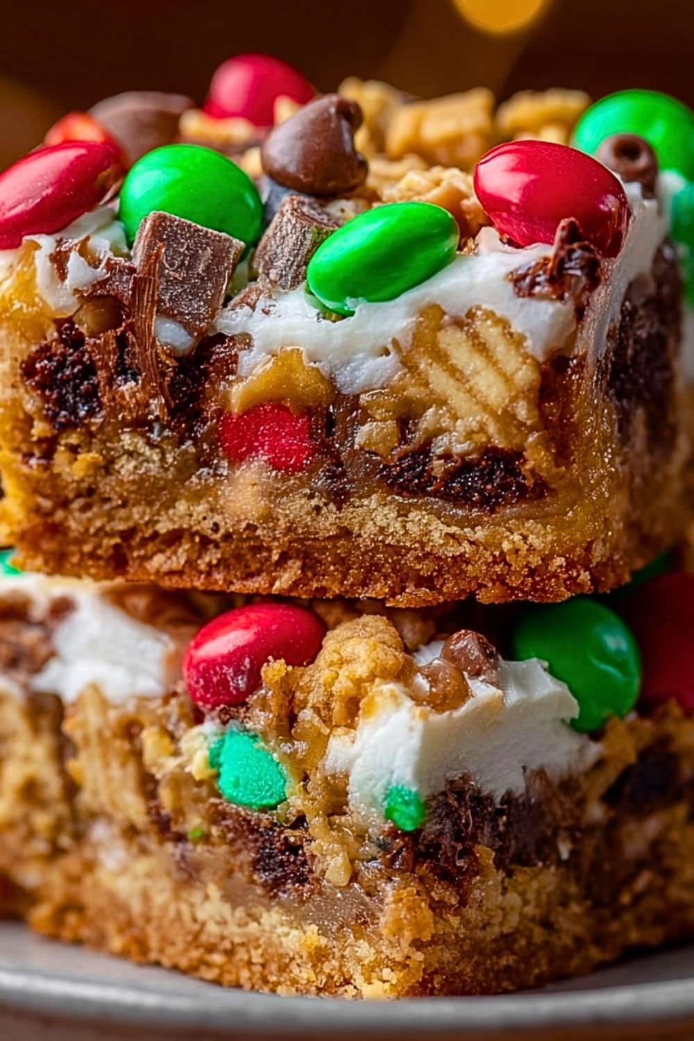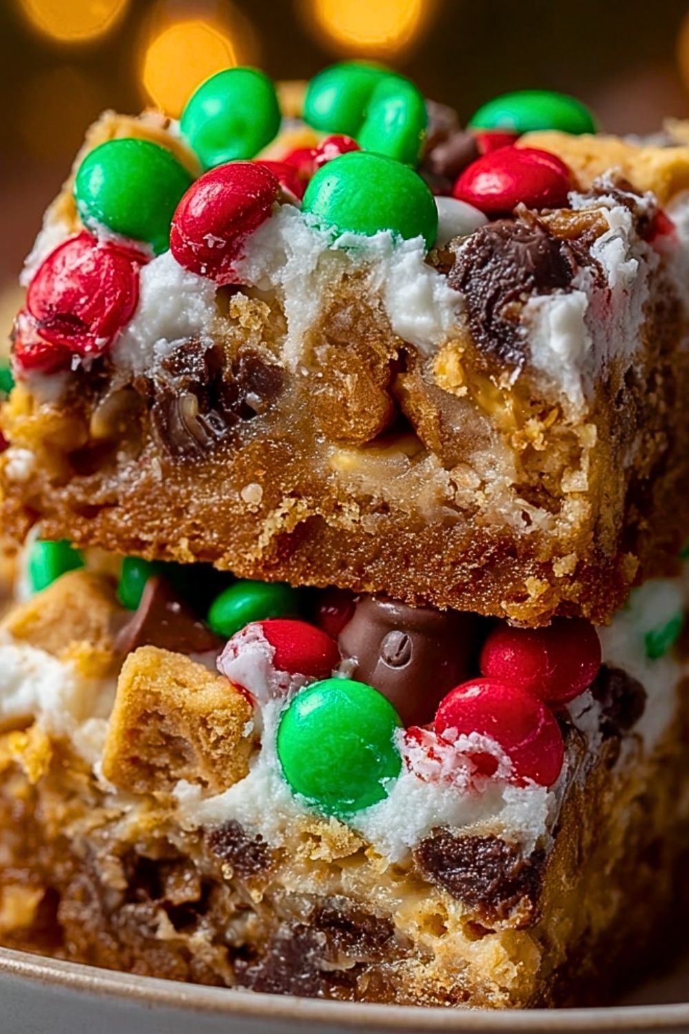 Another reason these bars stand out is their festive appearance. Bright pops of red and green candies instantly make them holiday-ready without requiring any extra decorating effort.
