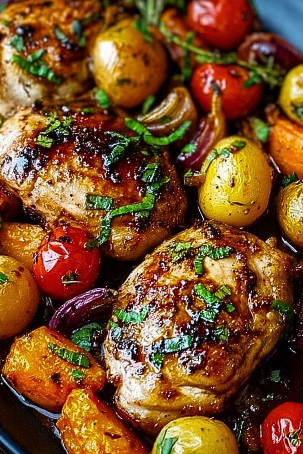 The magic really happens in the oven. As the chicken roasts, it soaks up the rich flavors of balsamic vinegar, garlic, and herbs, while the vegetables blister and caramelize to perfection. It’s colorful, satisfying, and looks like you spent hours making it—but it’s ready in less than an hour and all cooked on a single sheet pan.