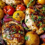 Dinner doesn’t get any easier—or tastier—than this Sheet Pan Balsamic Chicken and Veggies. Juicy, marinated chicken breasts roast alongside blistered cherry tomatoes and sweet caramelized onions, all glazed with a garlicky balsamic reduction. It’s a quick dinner, easy recipe, and healthy meal idea perfect for busy weeknights, meal prep, or dinner ideas that don’t require multiple pans. Bursting with flavor, colorful veggies, and minimal cleanup, this is your new go-to dinner solution.