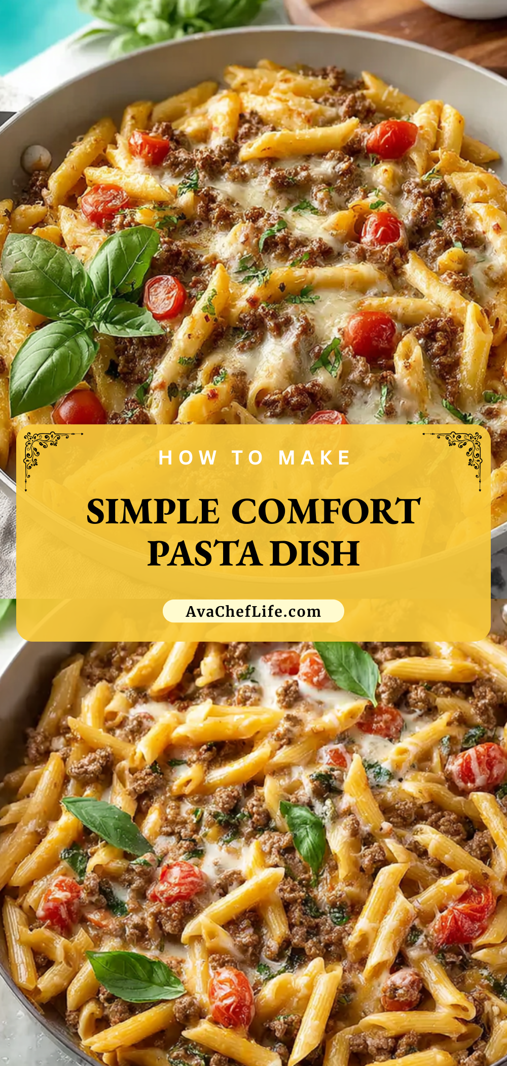Need a warm, hearty meal on the table fast? This *Simple Comfort Pasta Dish* is your new weeknight favorite. Made in one pan with ground beef, penne pasta, diced tomatoes, and melty cheese, it’s the ultimate comfort food that’s both easy and satisfying. Whether you’re looking for a quick dinner idea, an easy recipe for busy nights, or a filling dish the whole family will love, this pasta checks all the boxes. It’s rich, creamy, and perfect for leftovers — if you have any!