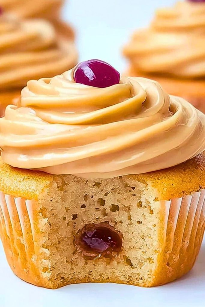 Whether you’re whipping these up for a bake sale, a birthday party, or just a cozy weekend treat, these cupcakes deliver a winning combination of texture and flavor. The moist cake, the creamy peanut butter frosting, and the glossy cherry (or grape) jelly center make them a playful yet sophisticated twist on a classic flavor combo. One bite, and you’ll feel like you’re sitting at your lunch table trading snacks with your best friend.
