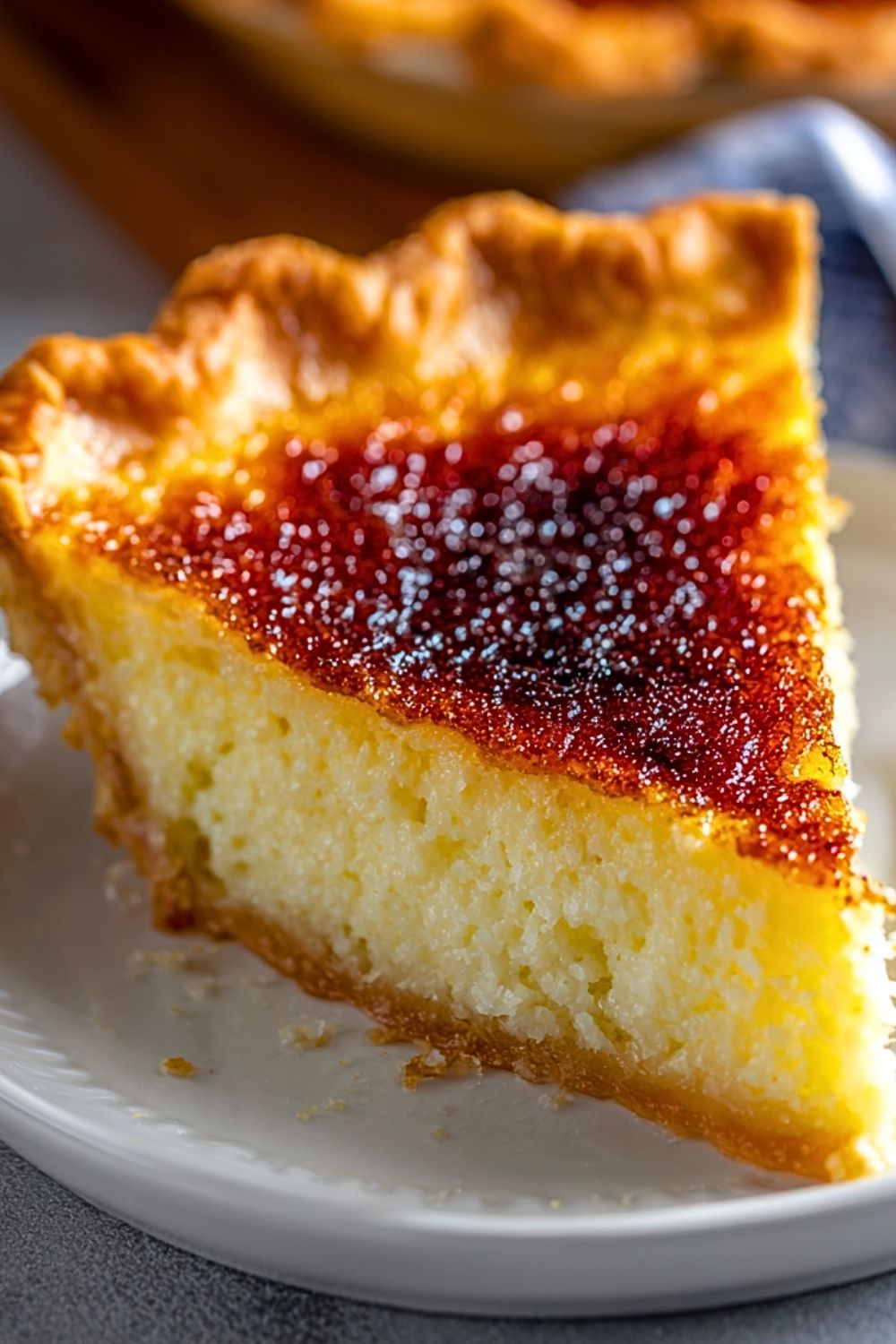 It has a sweet, tangy flavor with a custard-like texture. Think of it as a cross between crème brûlée and chess pie.